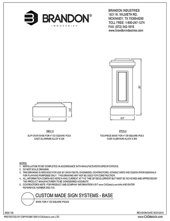 The SBQ-13 is a small classic slip-over base for 3" square poles. This base comes in your choice of black, dark green, and dark bronze, is made from cast aluminum and has a polyester powder-coat finish for durable protection against damage from people, animals, and weather