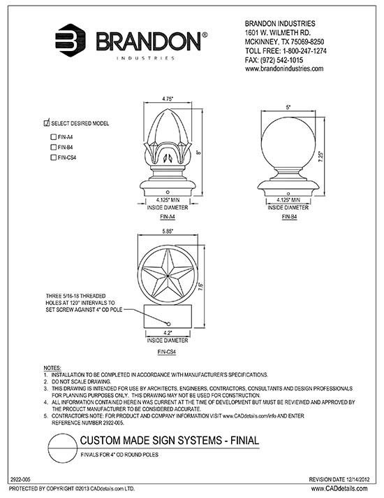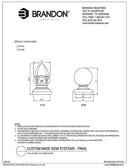 Acorn Finial for 3" OD Round Pole - Fits 3″ OD Round Sign Poles - Height: 6.75" Width: 3.125" - Cast Aluminum - Provides Decoration and Protection to your Sign Unit