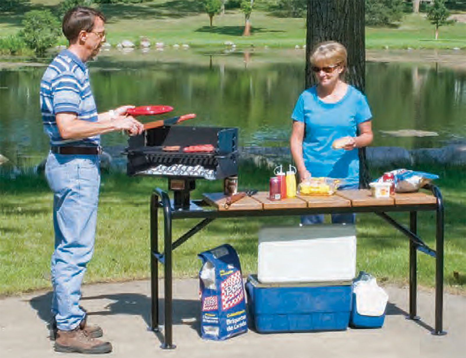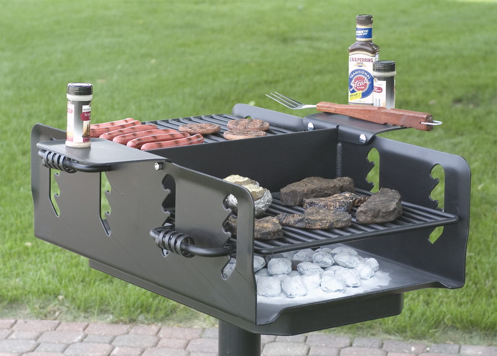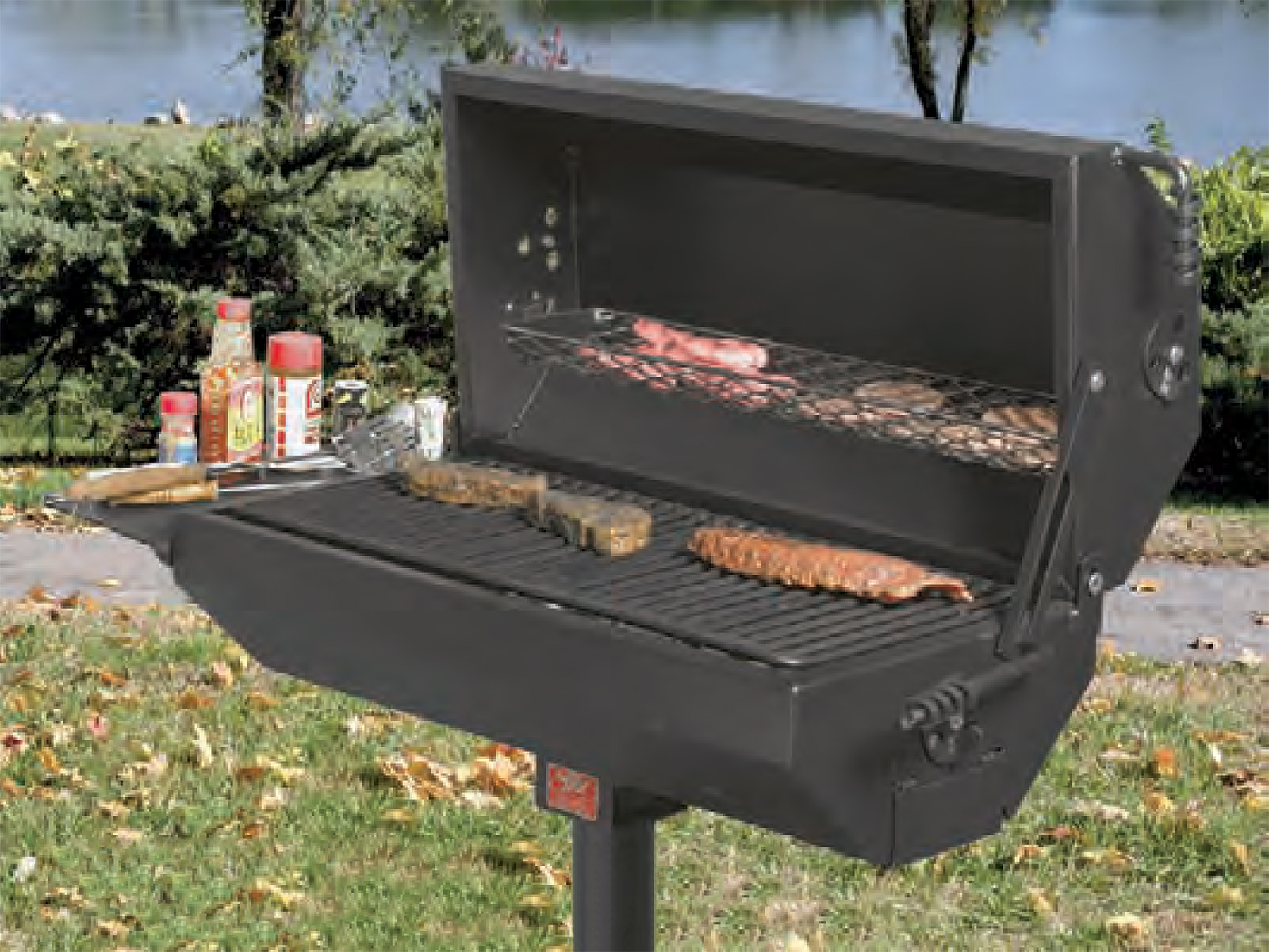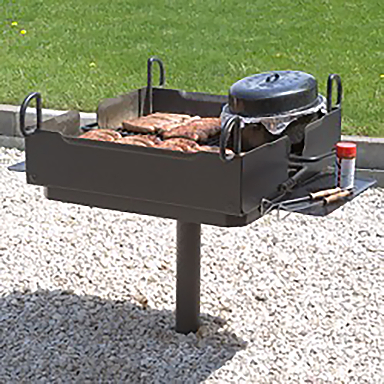 Accessible park grill - Pilot Rock Model ASW-20 charcoal grill meets ADA guidelines for access, reach and operability. The swivel grate is moved with one hand and requires minimal force.