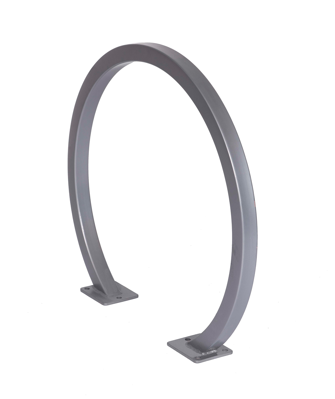 Ringo is a variation of the classic U-Rack with a touch of flair. Its graceful, circular shape allows bicycles to be parked without twisting. We offer them in heavy-duty, 2-3/8" round and 2" square steel tubing. Surface mounted. Capacity: 2 bikes
