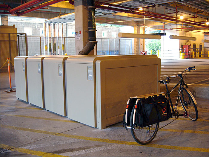 The Cargo Bike Lockers have one operating lockable door with the opposite door as a fixed rear panel. Each extension unit is composed of two triangular stalls combined by removing the interior side panel of the adjacent locker to create a parallelogram stall for longer bikes or multiple standard bikes. End units are triangular stalls for standard bikes.