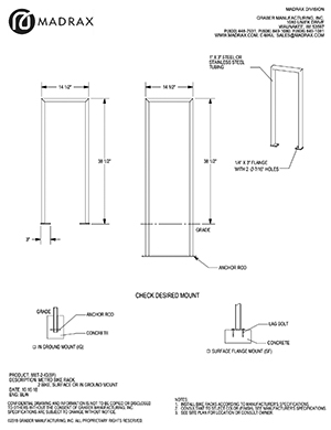 Metro™ Rack is a structured spin on the classic U-Rack. Clean lines and a sleek stainless finish make this rack the perfect enhancement for your industrial landscape. Each Metro™ Rack parks two bikes. The Metro™ Rack is constructed of 1“ x 3“ steel or stainless steel tubing and is available in a Galvanized Finish, a wide variety of Powder Coat colors, and Electro Polished Stainless Steel.