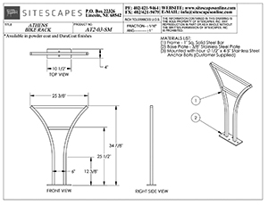The Athens Bike Parking is a simple yet decorative square bar style bike rack. Athens bike racks provide an easy security solution for parking and locking bikes. Athens bike racks two capacity bike racks take little room and fit your space.