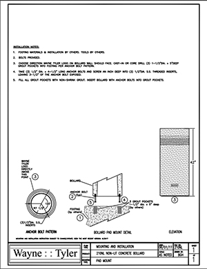 210 SERIES-18" DIA X 42" TALL CONCRETE BOLLARD WITH FLAT TOP: The bollard features a heavy-wall cast aluminum 45-degree cutoff louver with a baked polyester powder coat finish surrounding an opal acrylic cylindrical lens, mounted on a high-strength reinforced concrete base. A complementary non-illuminated bollard, constructed from one-piece high-strength cast concrete, is also available. All Wayne Tyler concrete bollards are factory-sealed with a moisture barrier to prevent corrosion and freeze-thaw cracking.