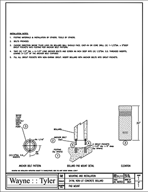241 SERIES-11" DIA X 30" TALL CONCRETE BOLLARD WITH FLAT TOP: The bollard features a heavy-wall cast aluminum 45-degree cutoff louver with a baked polyester powder coat finish surrounding an opal acrylic cylindrical lens, mounted on a high-strength reinforced concrete base. A complementary non-illuminated bollard, constructed from one-piece high-strength cast concrete, is also available. All Wayne Tyler concrete bollards are factory-sealed with a moisture barrier to prevent corrosion and freeze-thaw cracking.