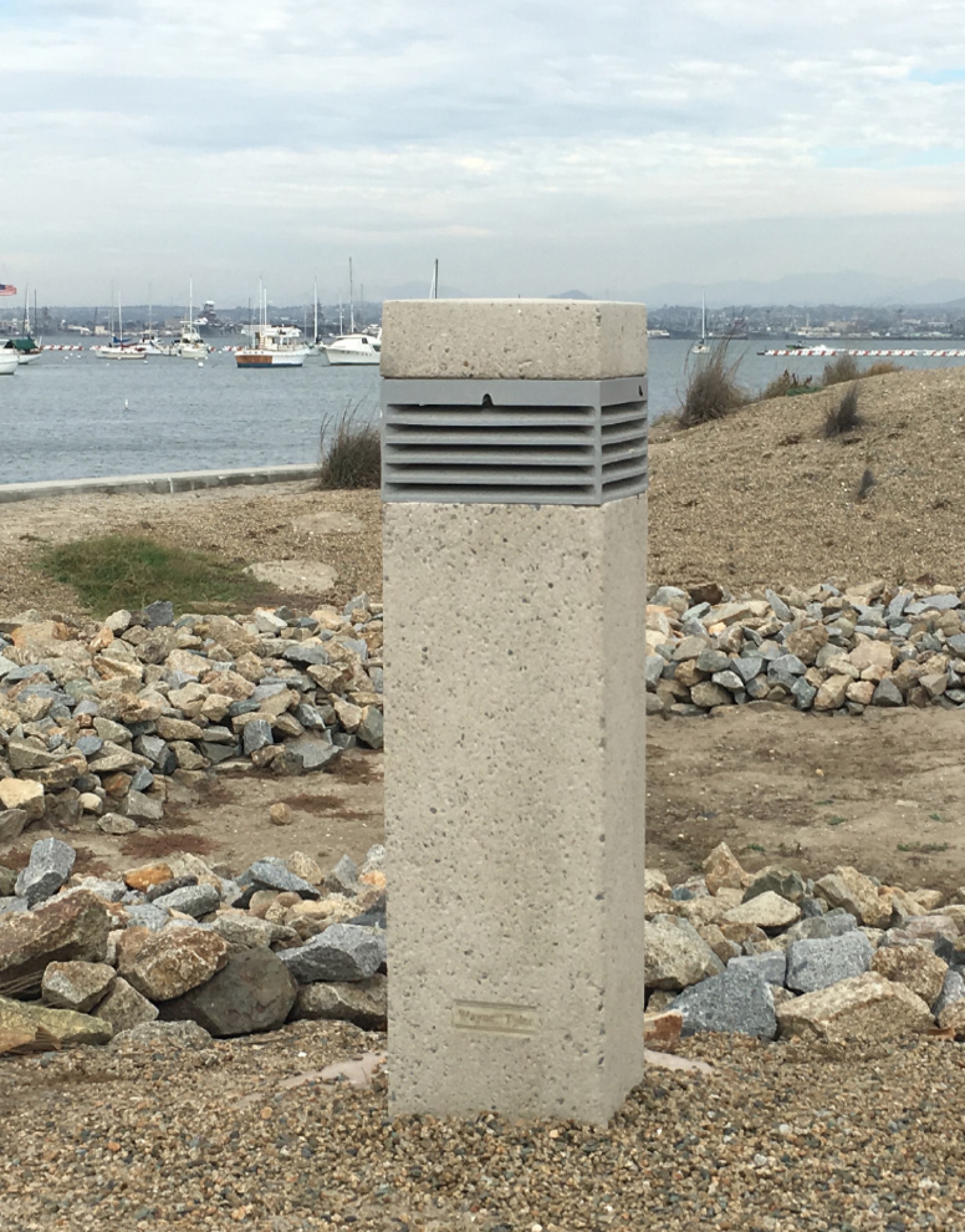 220 Series - Heavy wall cast aluminum cut-off louver with baked polyester powdercoat surrounding an opal acrylic cylindrical lens.
