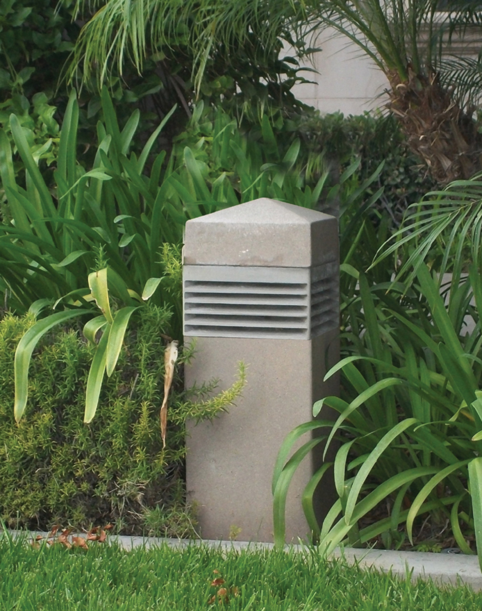 224 Series - Heavy wall cast aluminum cut-off louver with baked polyester powdercoat surrounding an opal acrylic cylindrical lens.
