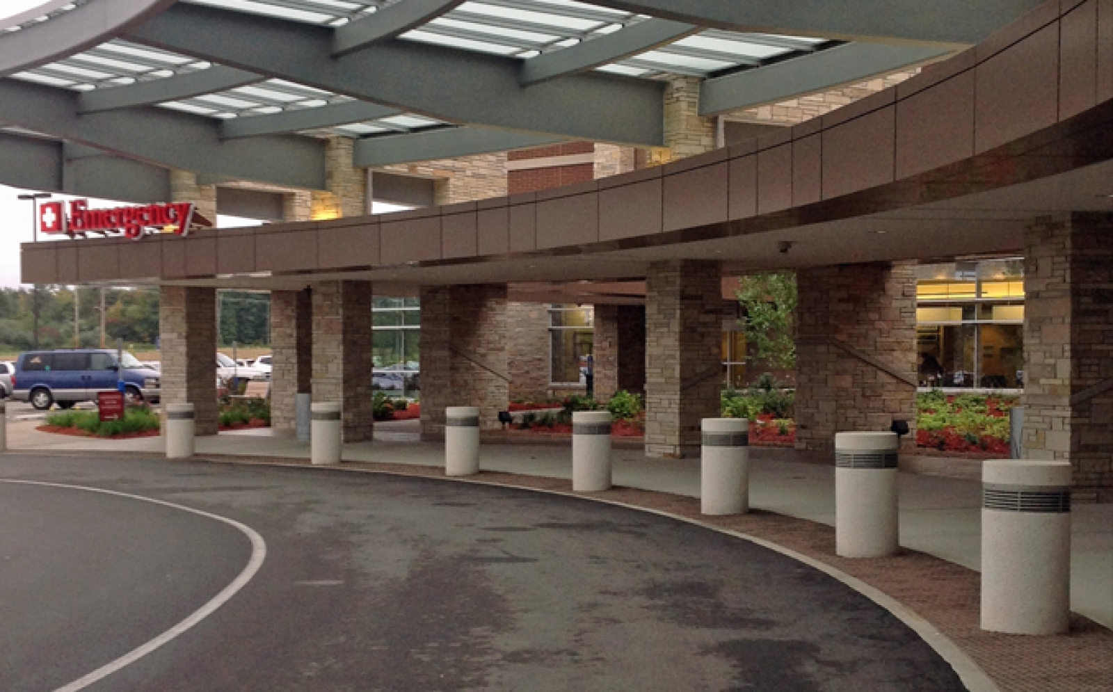 Barrier-Security Bollard 210 - Heavy wall cast aluminum cut-off louver with baked polyester powdercoat surrounding an opal acrylic cylindrical lens.