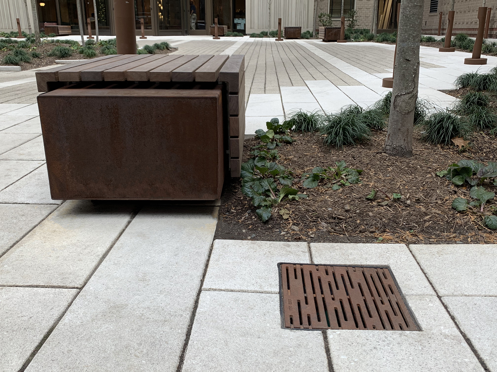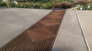 The Plex pattern is a unique offering for those who prefer a more rectilinear design aesthetic. The 5" wide grate is designed to fit three different industry standard drain bodies. All Iron Age grates are ADA compliant, with 1/2" maximum openings. Shown in cast iron with Baked-On-Oil Finish. Also available in cast aluminum and bronze.