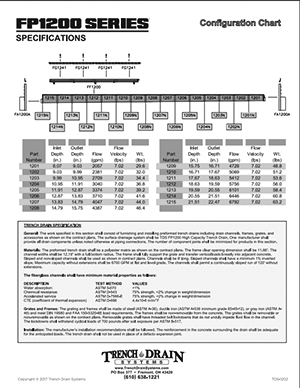 TDS's FP1200 Series high volume trench drain is the ideal solution for high volume flow situations such as airports, roadways and seaports. Designed with the installer in mind, this revolutionary design incorporates full 360° interlocks to minimize installation time.