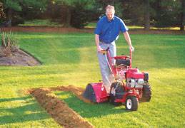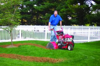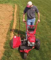 The Turf Teq line of Walk Behind commercial landscaping equipment features a Power Edger, Power Broom and Power Rake. The machines have a 13 horsepower Honda engine and a hydrostatic transmission.
