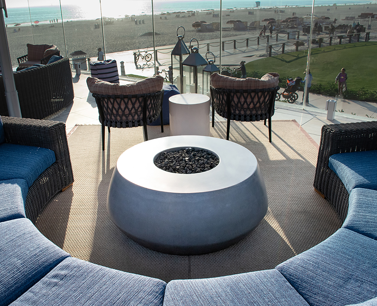 ARCHPOT Belize Round and Belize Rectangle Fire Tables are prominently featured at the Hotel Del Coronado, which is currently undergoing extensive renovations. The Belize is the perfect choice; cast in durable GFRC, beautiful natural concrete finish and All Weather Electronic Ignition System.