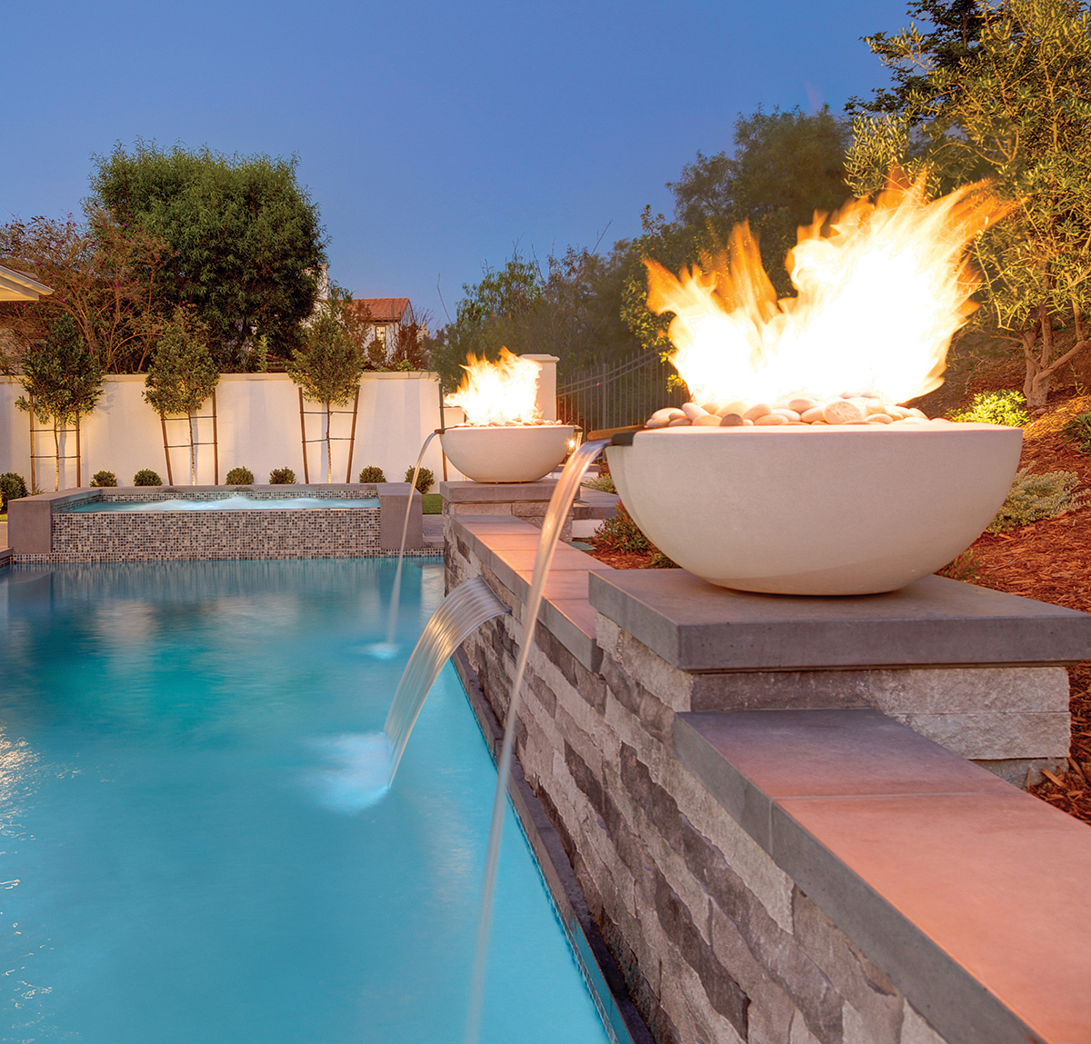 Light up the night with Legacy Round Fire Water Bowls cast in durable GFRC. Vessels include a high-quality Archpot Burner System with manual operation or All Weather Electronic Ignition System upgrades. Complete with a Stainless Steel Complex Scupper and choice of beautiful finishes to add that special touch to your designs.