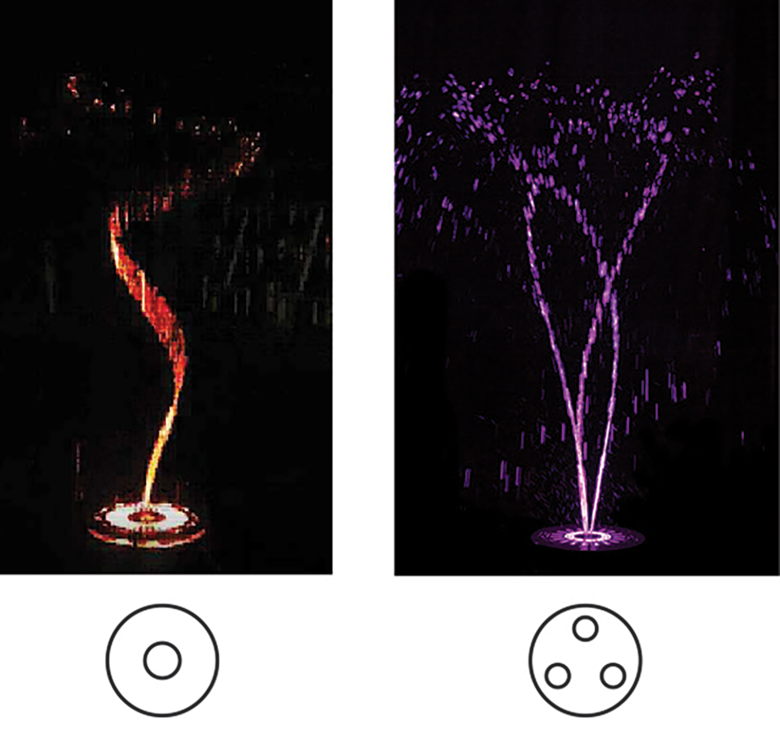 FIAC-3000 Series Fountain-in-a-Can is a "pour in place" assembly containing a flush mount, 360 degree revolving spray effect and 360 degree illuminating LED light fixture. The assembly can be utilized for plaza style water features or may be used for interactive splash pads. The patent-pending manual adjustment valve allows for the effect height to be adjusted from the top-plate without ever having to enter the can.