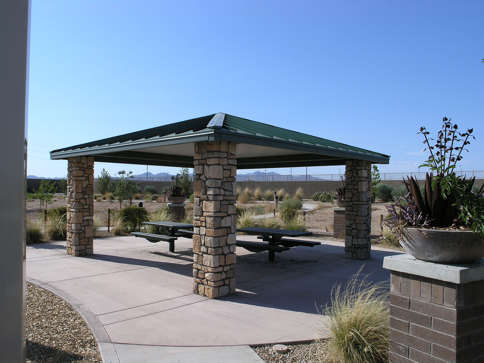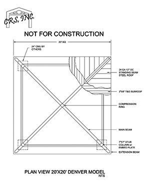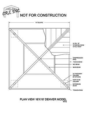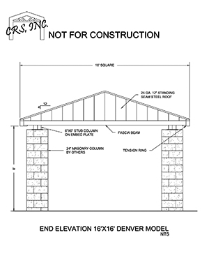 Available in square and rectangle, the popular Denver shade model can be designed to complement a variety of architectural styles. Designers may specify columns and roof to match existing architectural amenities simply by varying the column materials and design. Available in square, rectangle, “U”, “L”, “T” and “C” shapes. Measured eave to eave: 16″sq, 24″sq, and 32″sq are common column sizes. Available with varying roof pitches. Nearly any size is available both standard and custom.