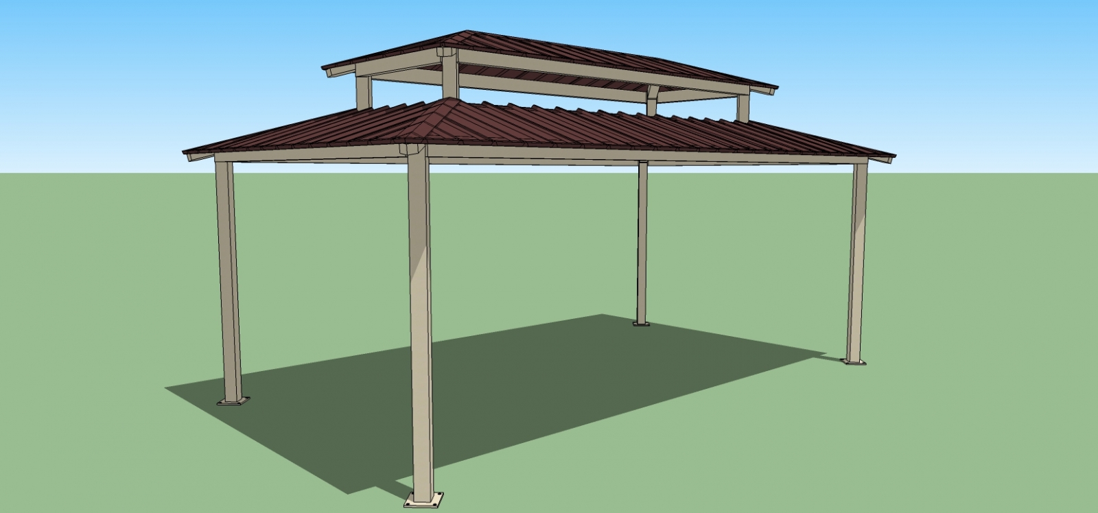 Rectangular Hip Shelter with Multi-Rib Roof Panels and 2 Tier Clerestory