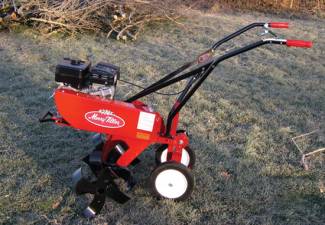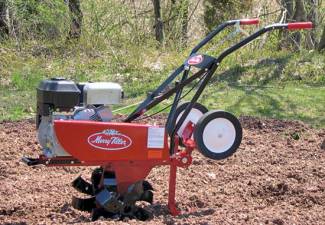 Merry Tiller??s?? mid-tine?? design features engine weight directly over tines, extra strong tie bars, handles, frame rails and heavy-duty transmissions lubricated with ???00?? grease.