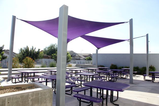 Outdoor seating and break areas are a perfect way to bring people together. Whether it is at your local church, school, auto dealership, or any business, you can ensure anything and anyone under it will be shaded from those harmful UV rays by up to 20 degrees. We have a wide array of fabric colors and designs to choose from!