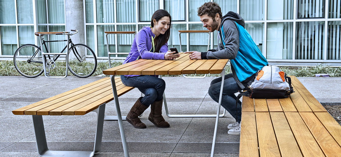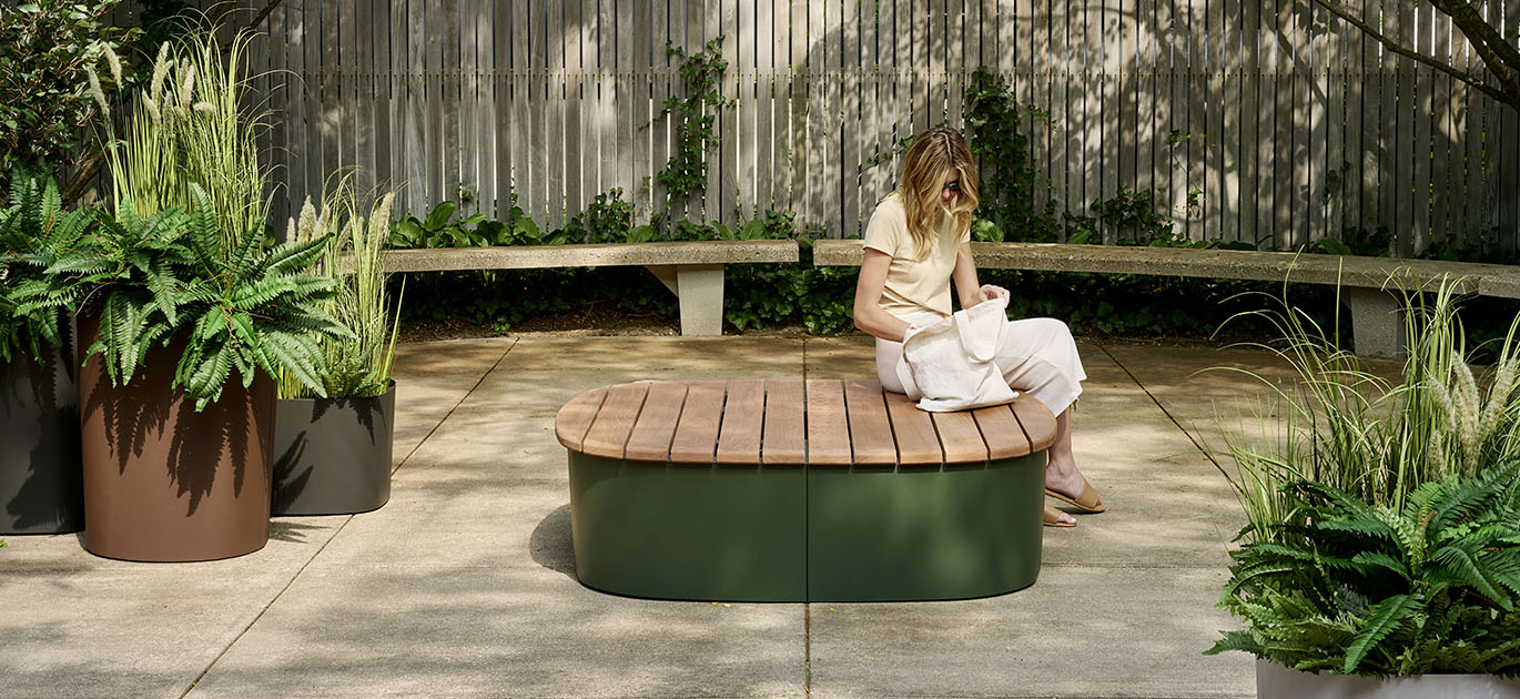 Plains are large-format, architectural beams and platforms that vary in height and width to create customizable settings of layered seating and surfaces. Plains modules are offered in four widths each with short and tall heights, are constructed from either wood or powdercoated metal, and can be embedded or surface-mount. Pods are modular forms for seating and planting designed to be grouped together in tiered clusters. Pods seating modules are capped with wood seats and are available four footprints. Pods planters available in the four same footprints, each with an additional taller height. All Pods modules are constructed with a bent and powdercoated metal base and include leveling glides.