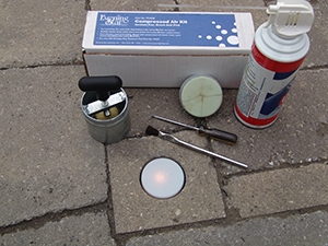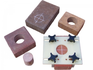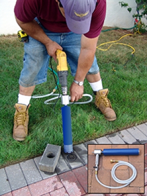 When installing model PL250 Paver Lights, the Adjustable Coring Template accessory allows for easy starting and positioning of core-drilled holes in pavers when using a hand held drill. Nylon template can be used with or without the aluminum rails for versatility. For use only with a 2 1/2" diameter diamond-tipped core bit.