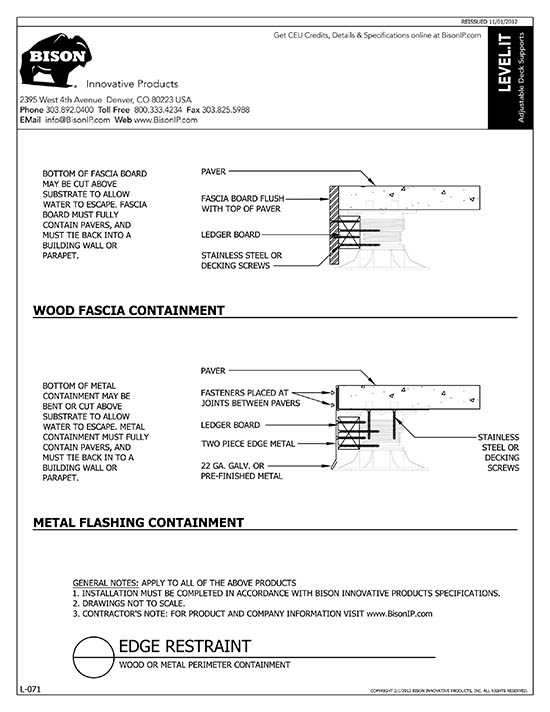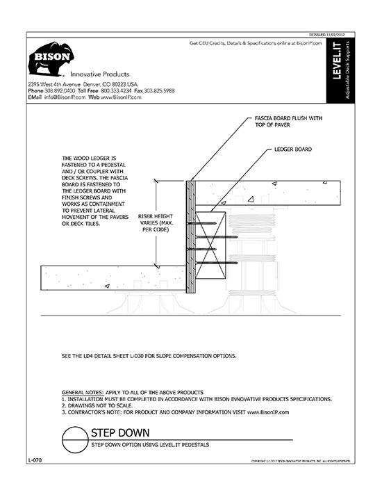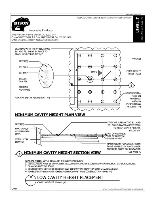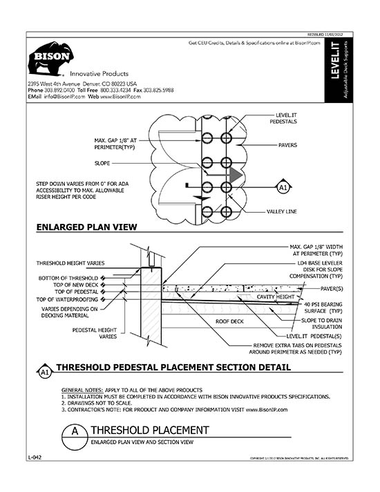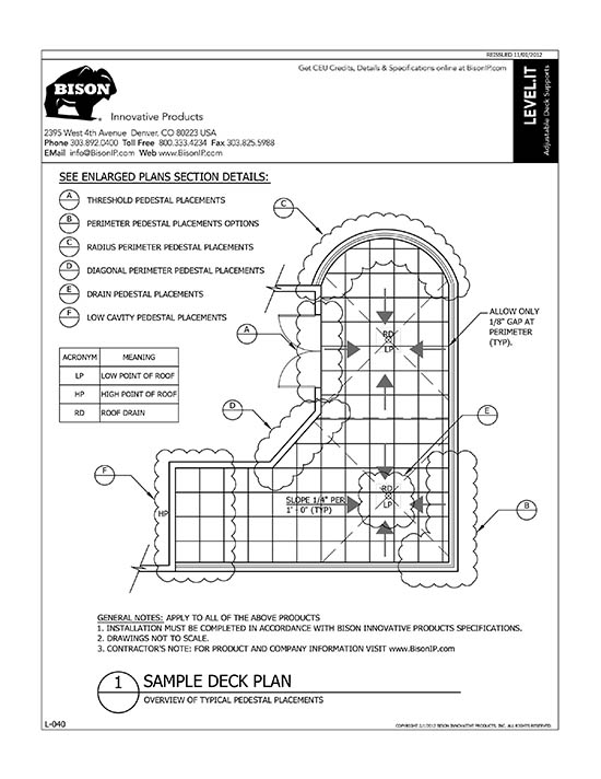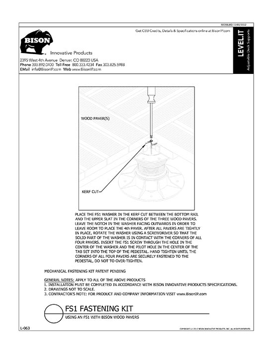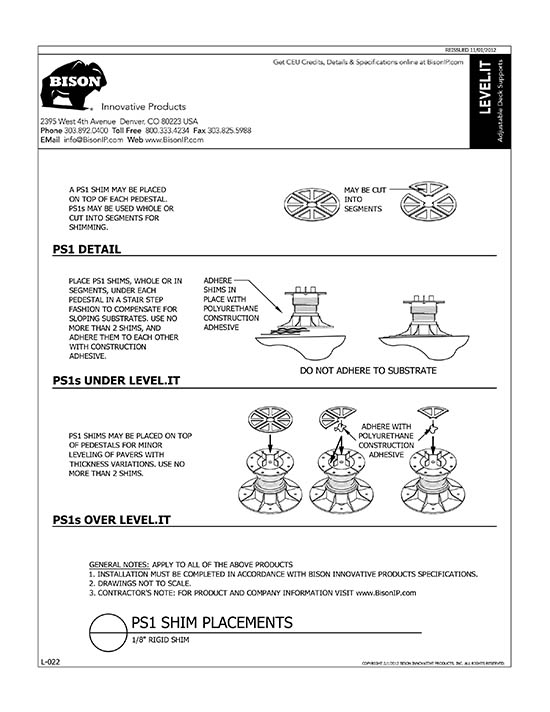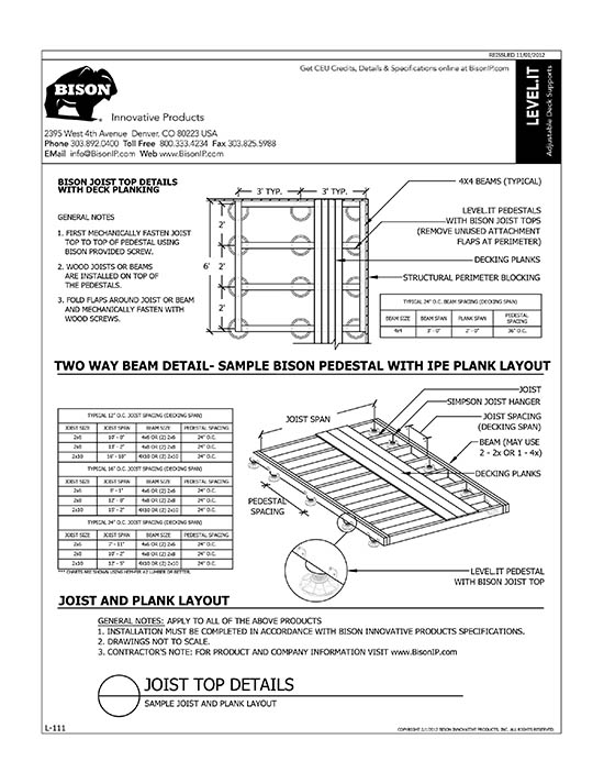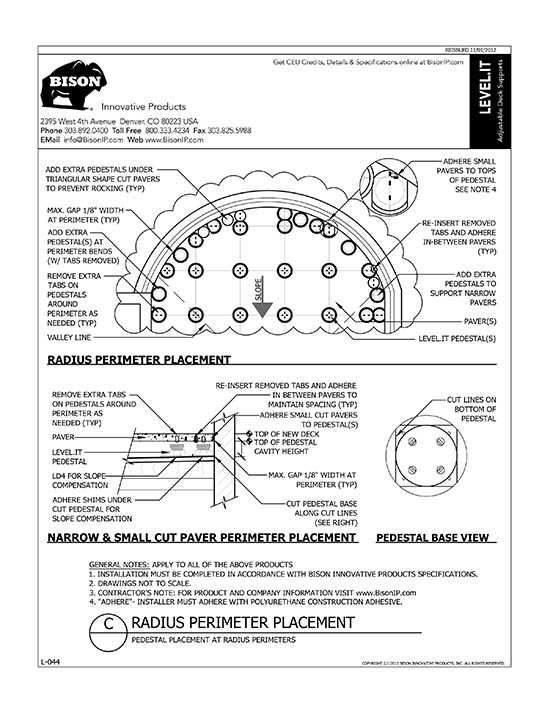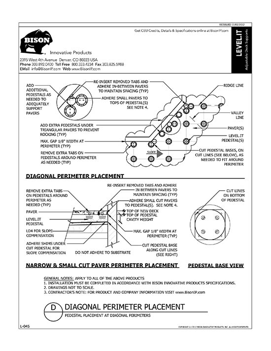 Bison Level.It adjustable deck supports are the simple solution to your decking needs! Use on rooftops, balconies, over cracked concrete patios, even on-grade! Works with any surface material, from wood tiles, traditional stringer and plank decks, natural stone, composites or concrete. With Level.it, if you can dream it, you can do it! Ideal for contractors or the do-it-yourself homeowner.