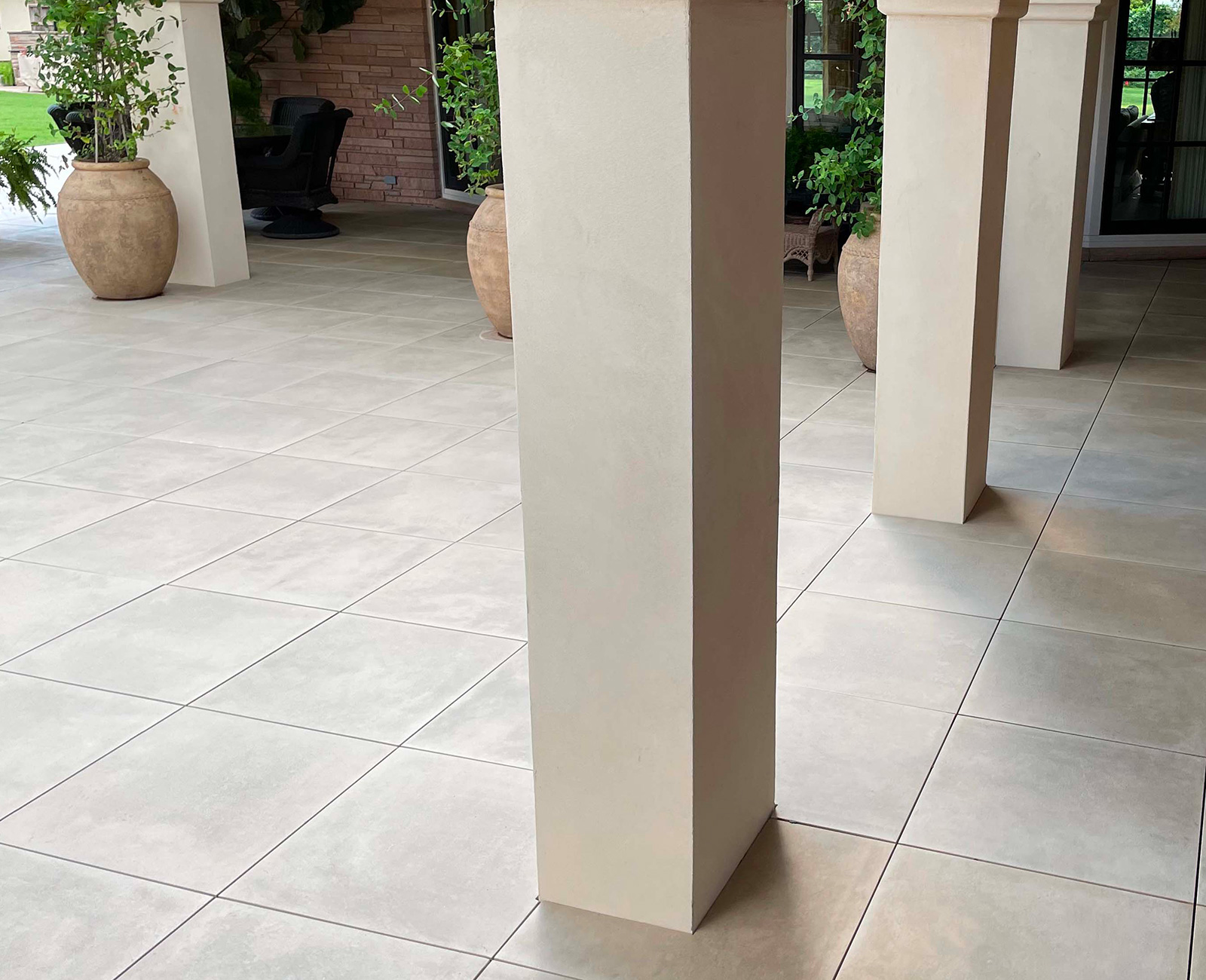 Subtle sponge finish with slight variations in shade across the pavers displays a somewhat hand-finished appearance.