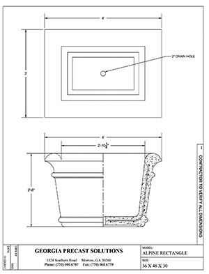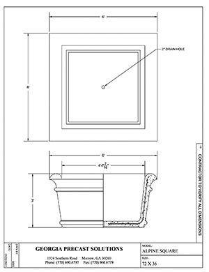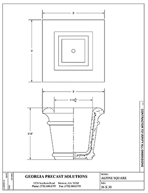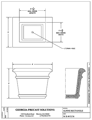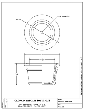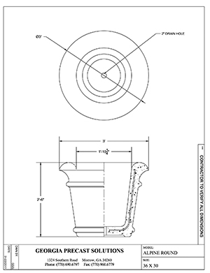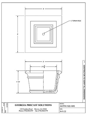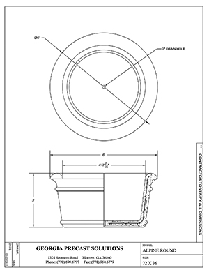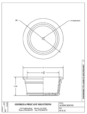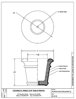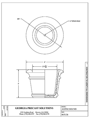 The planter shown is the Alpine design. Available in sizes from 2' to 6' round, square and rectangular. Available in Precast, GFRC or Insulated. Can be made with or without drain holes. Standard color and finishes to choose from or we can do a custom color match.