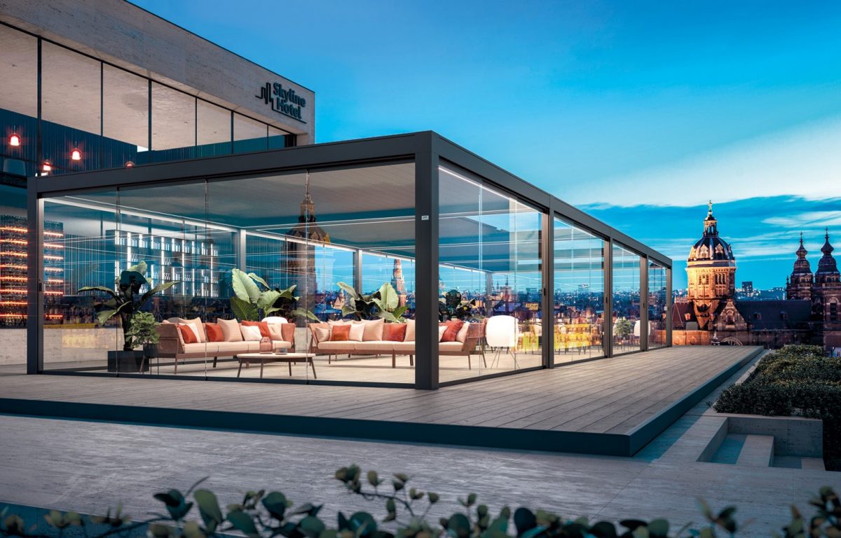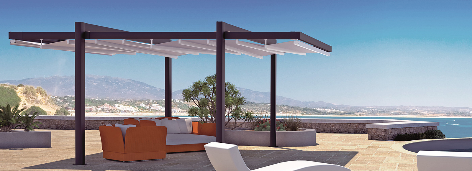 Products | LA Details | Outdoor Living | Pergolas / Patio Coverings | OPERA & VISION Motorized Adjustable Louvered Roofs for restaurants, hotels, and commercial spaces