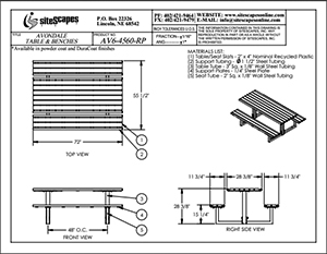 Made of Ipe hardwood or recycled plastic lumber, Avondale tables are perfect for parks and other natural settings. Picnic tables are offered in a number of styles and can be suface-mount, embed-mount or freestanding.