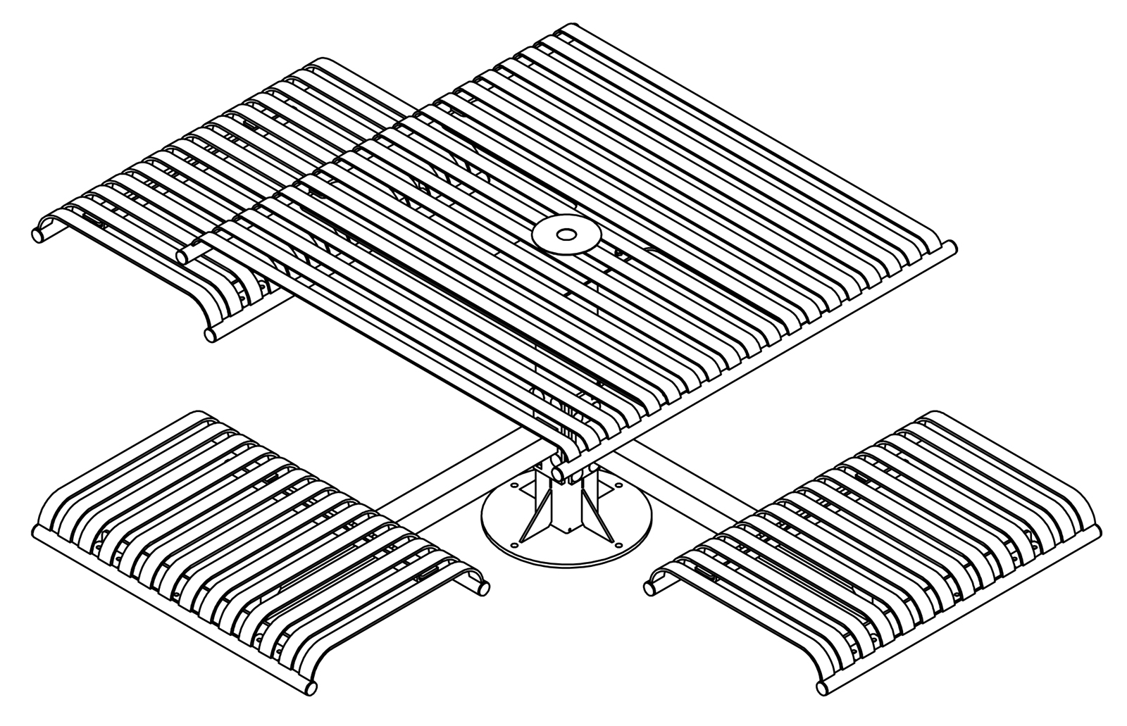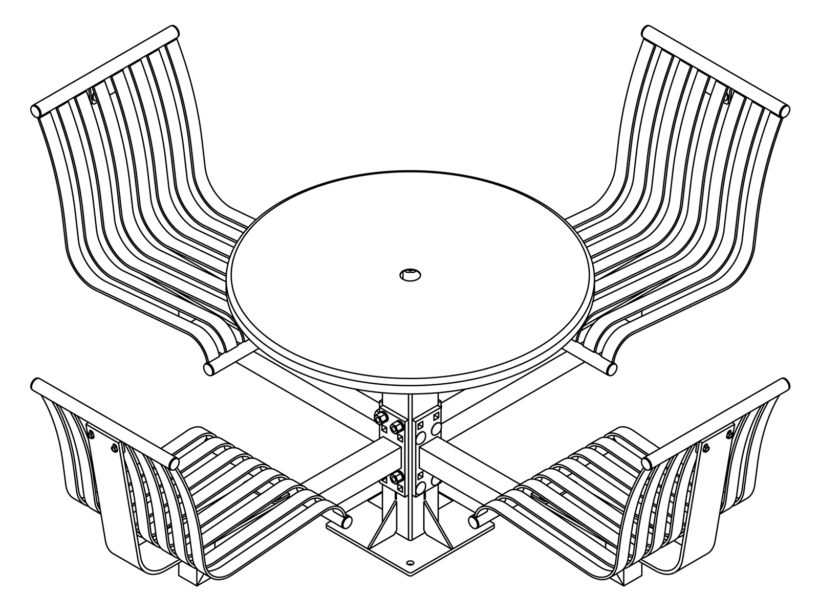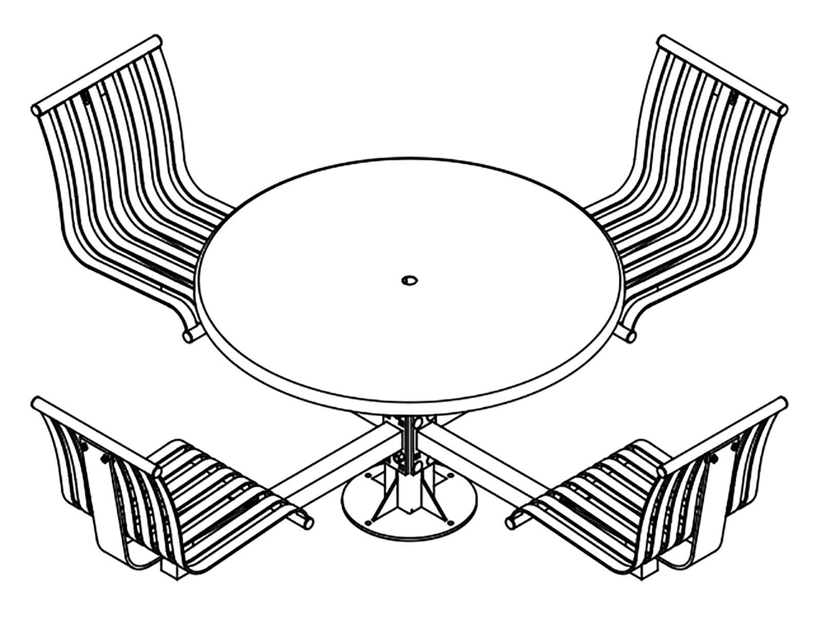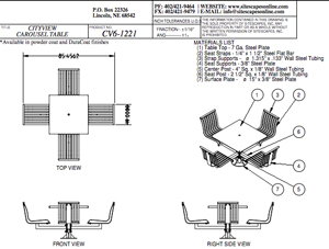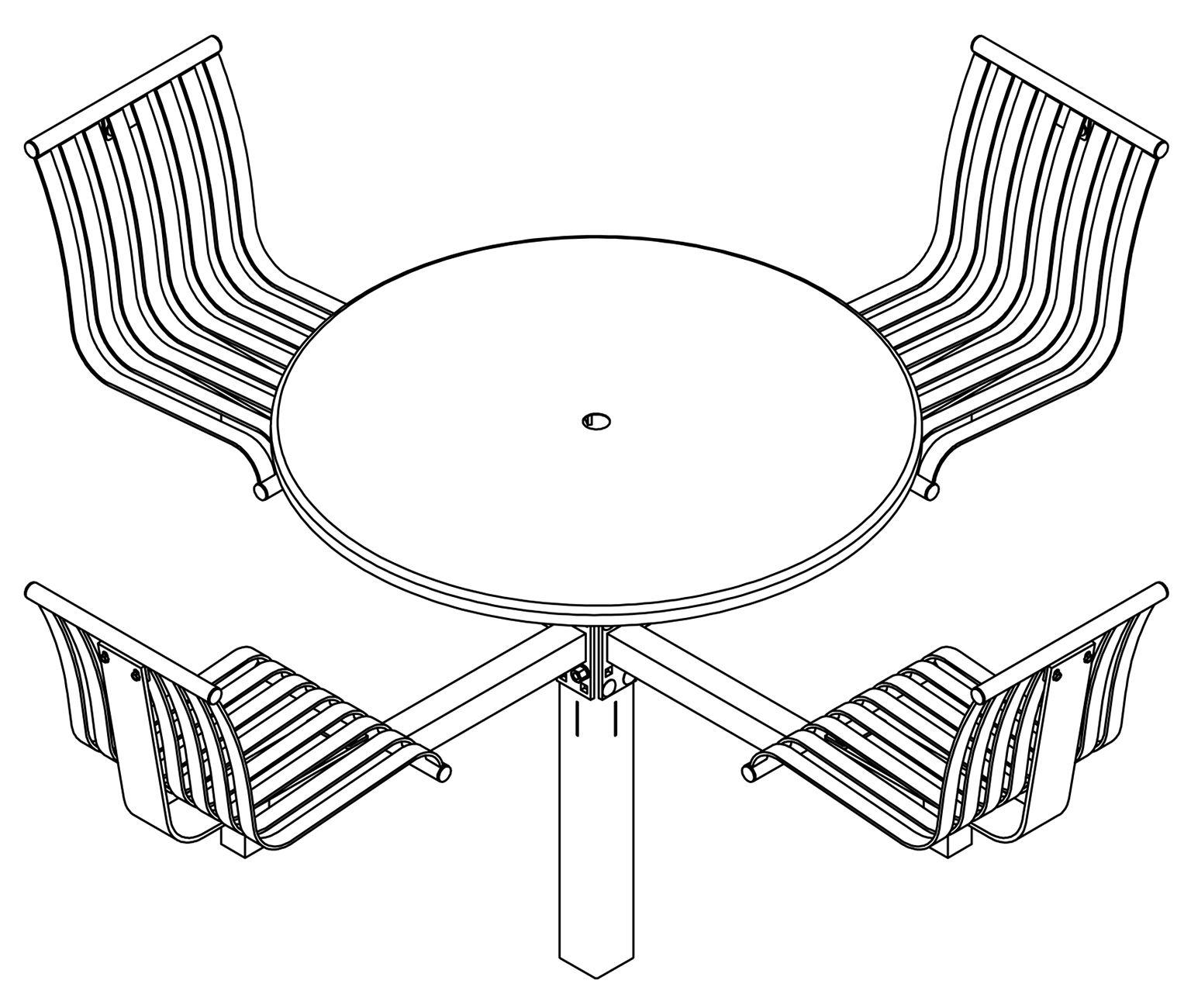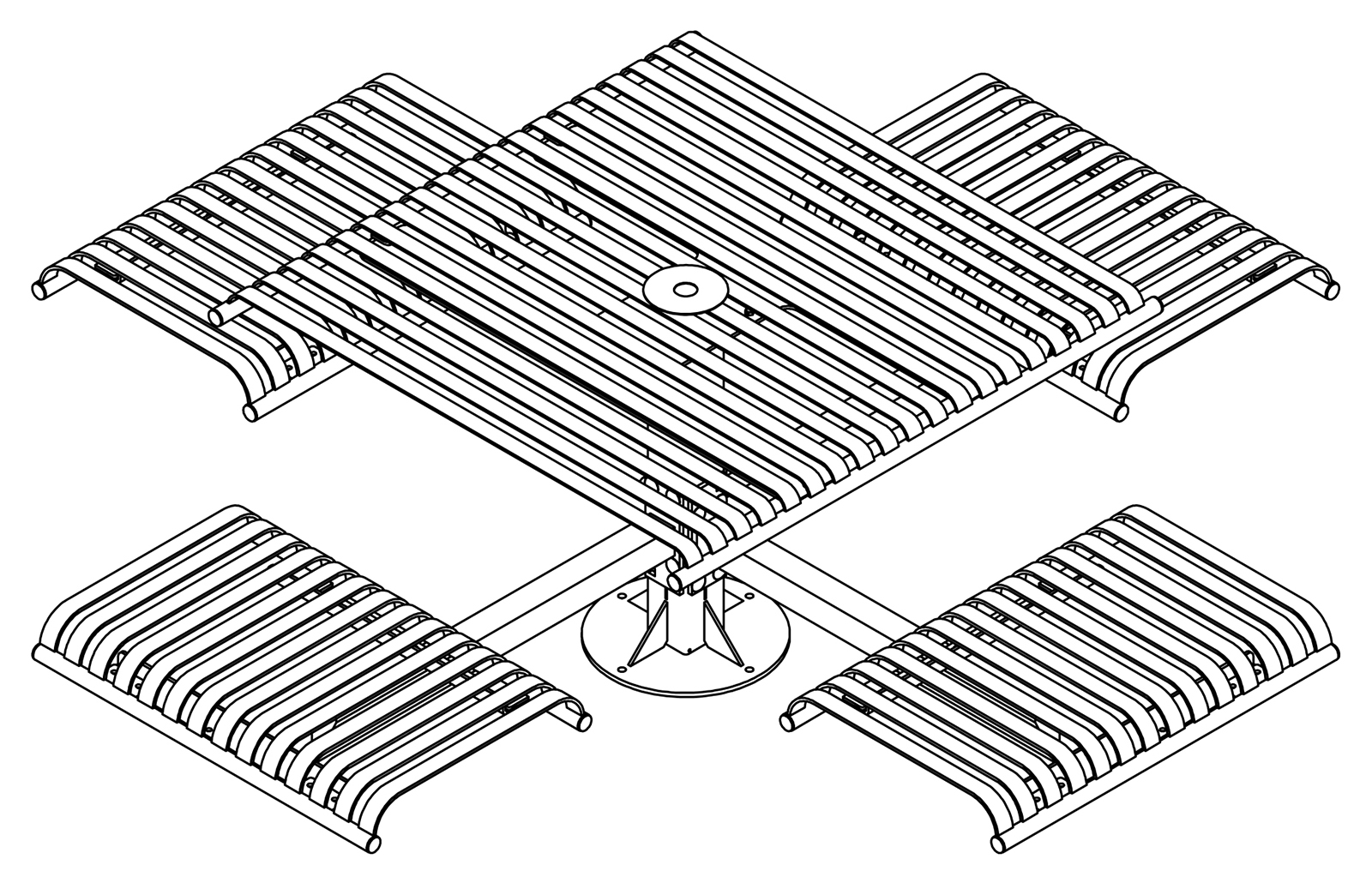 The CityView carousel tables provide clustered seating options for any patio setting. Chairs are permanently fixed to tables with support tubes that attach to the center post. CityView carousel tables offer a wide variety of design features and include round, square, ribbon style or solid table tops and can be offered in several mounting options.