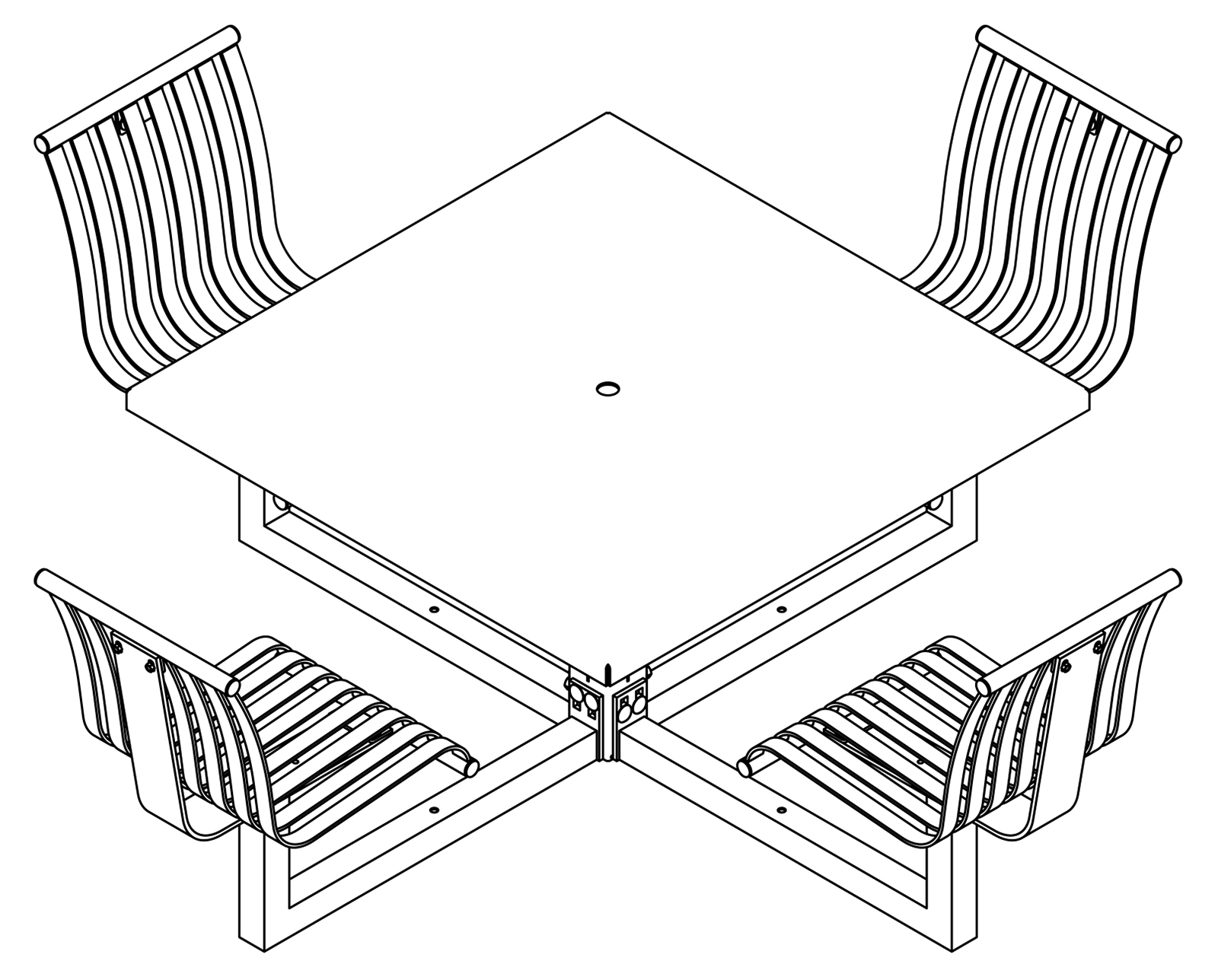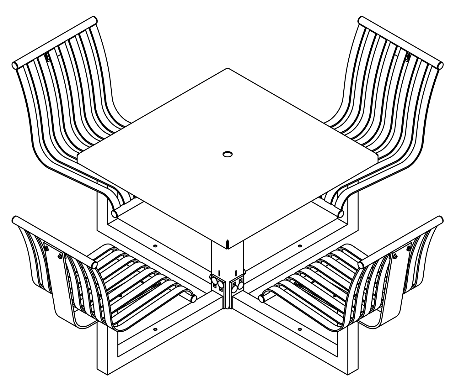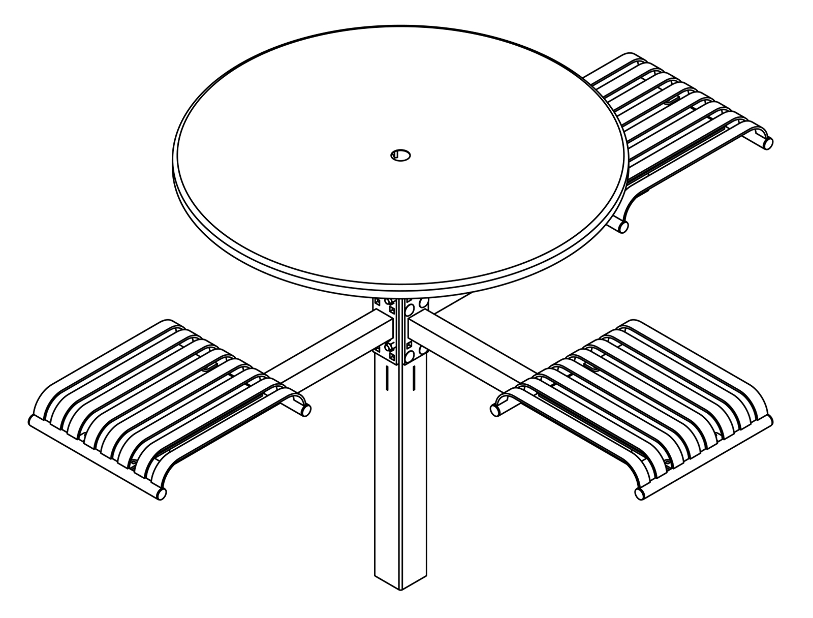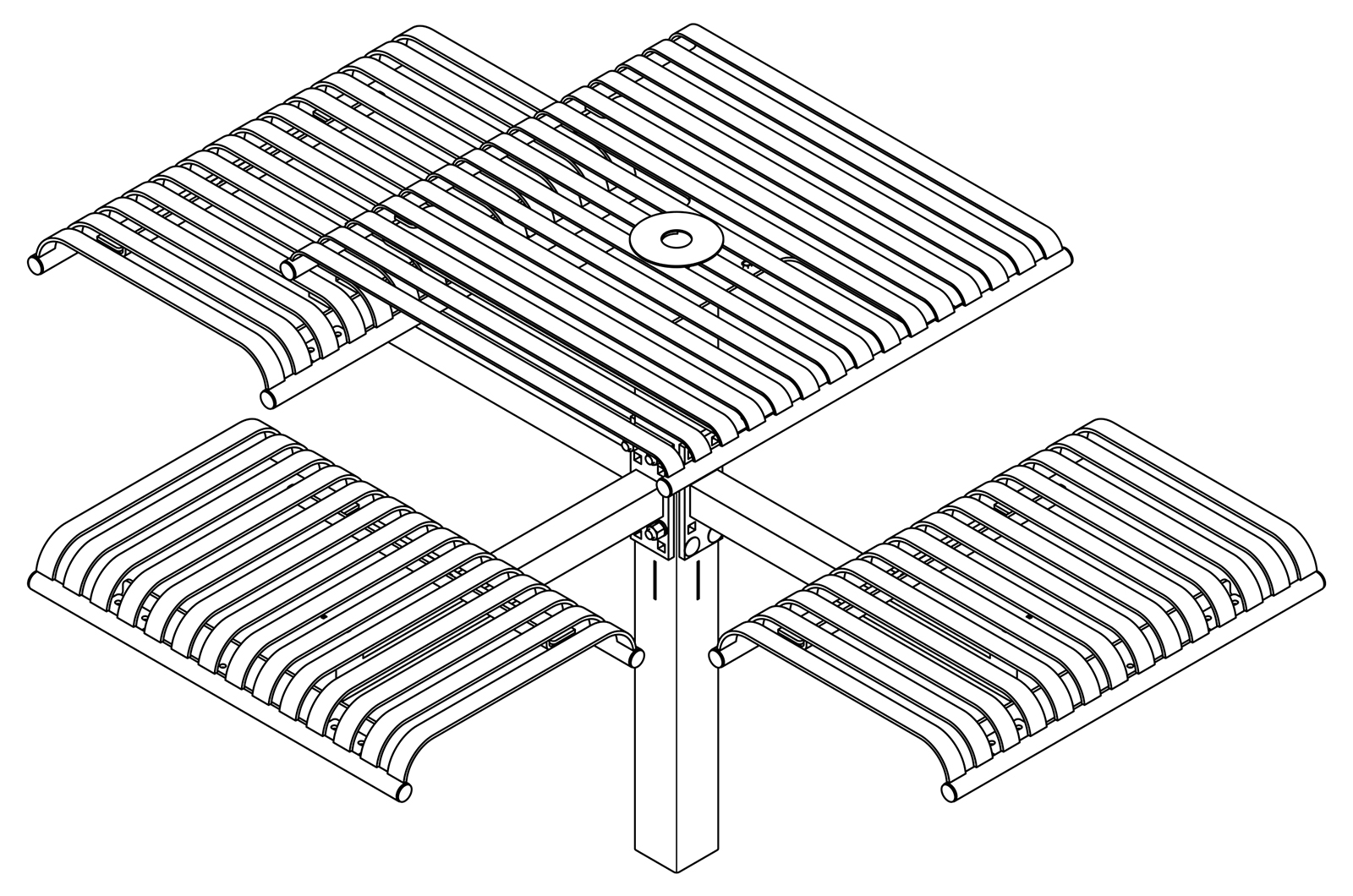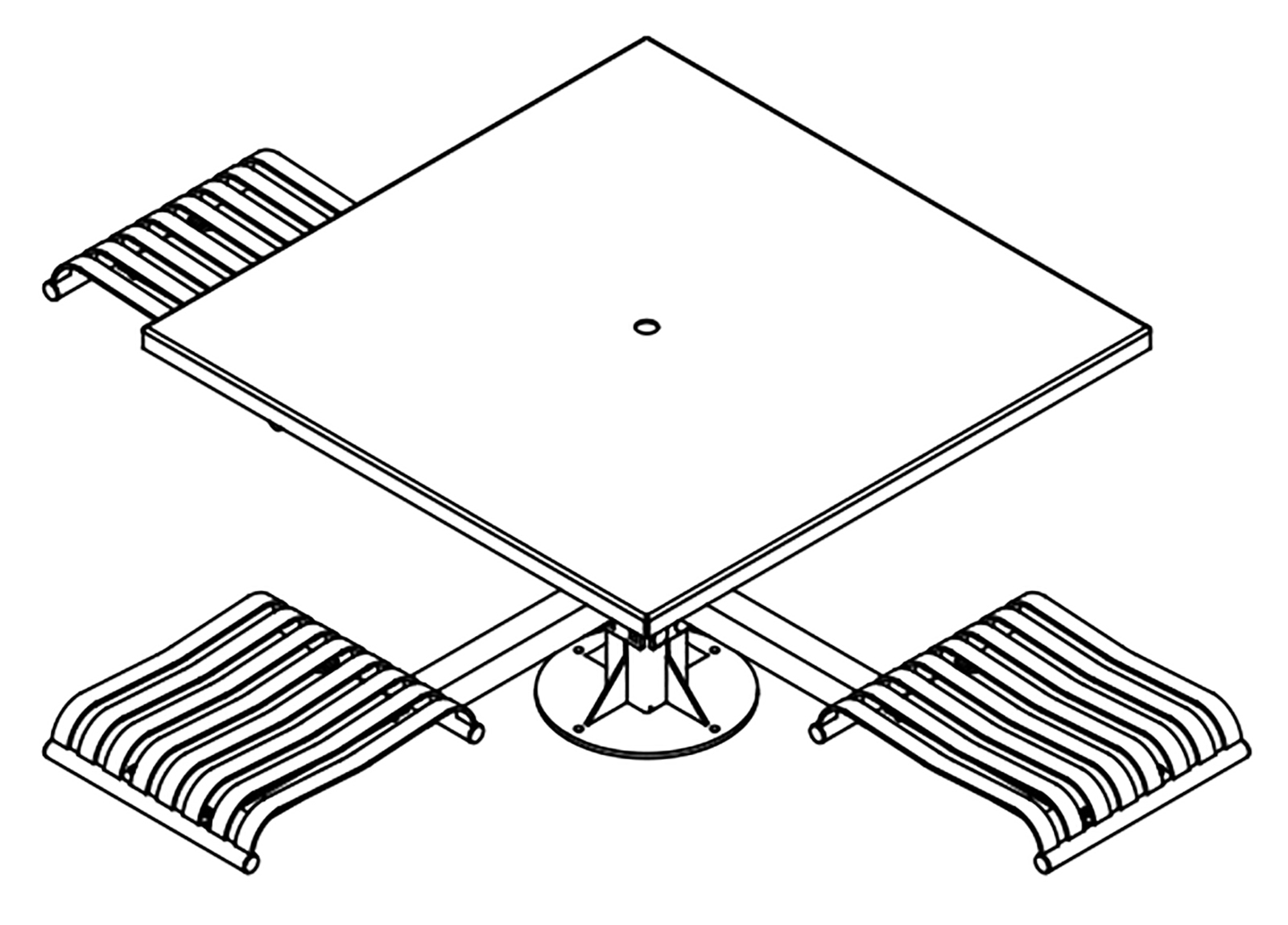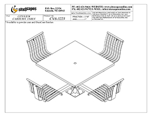 The CityView carousel tables provide clustered seating options for any patio setting. Chairs are permanently fixed to tables with support tubes that attach to the center post. CityView carousel tables offer a wide variety of design features and include round, square, ribbon style or solid table tops and can be offered in several mounting options.