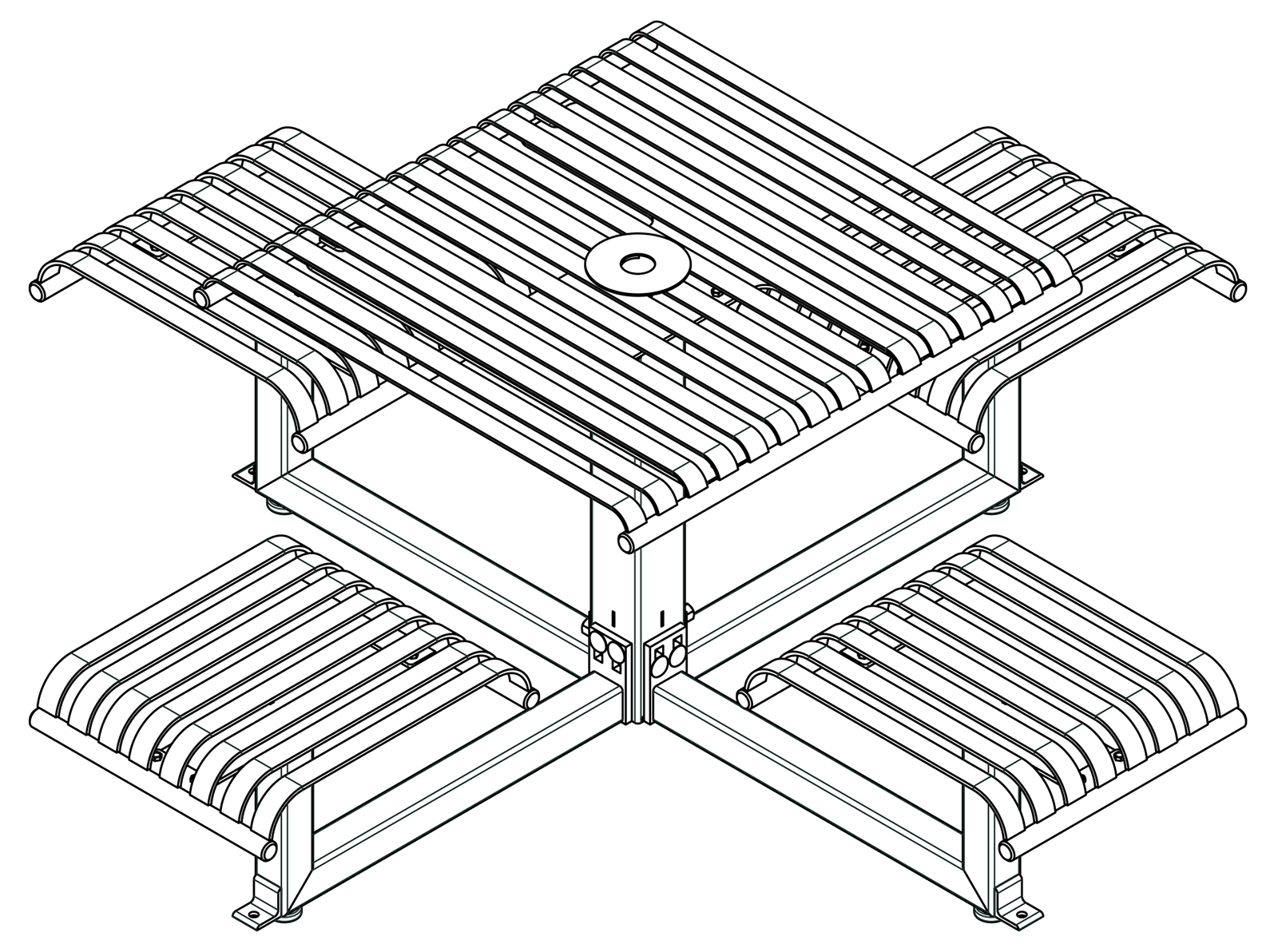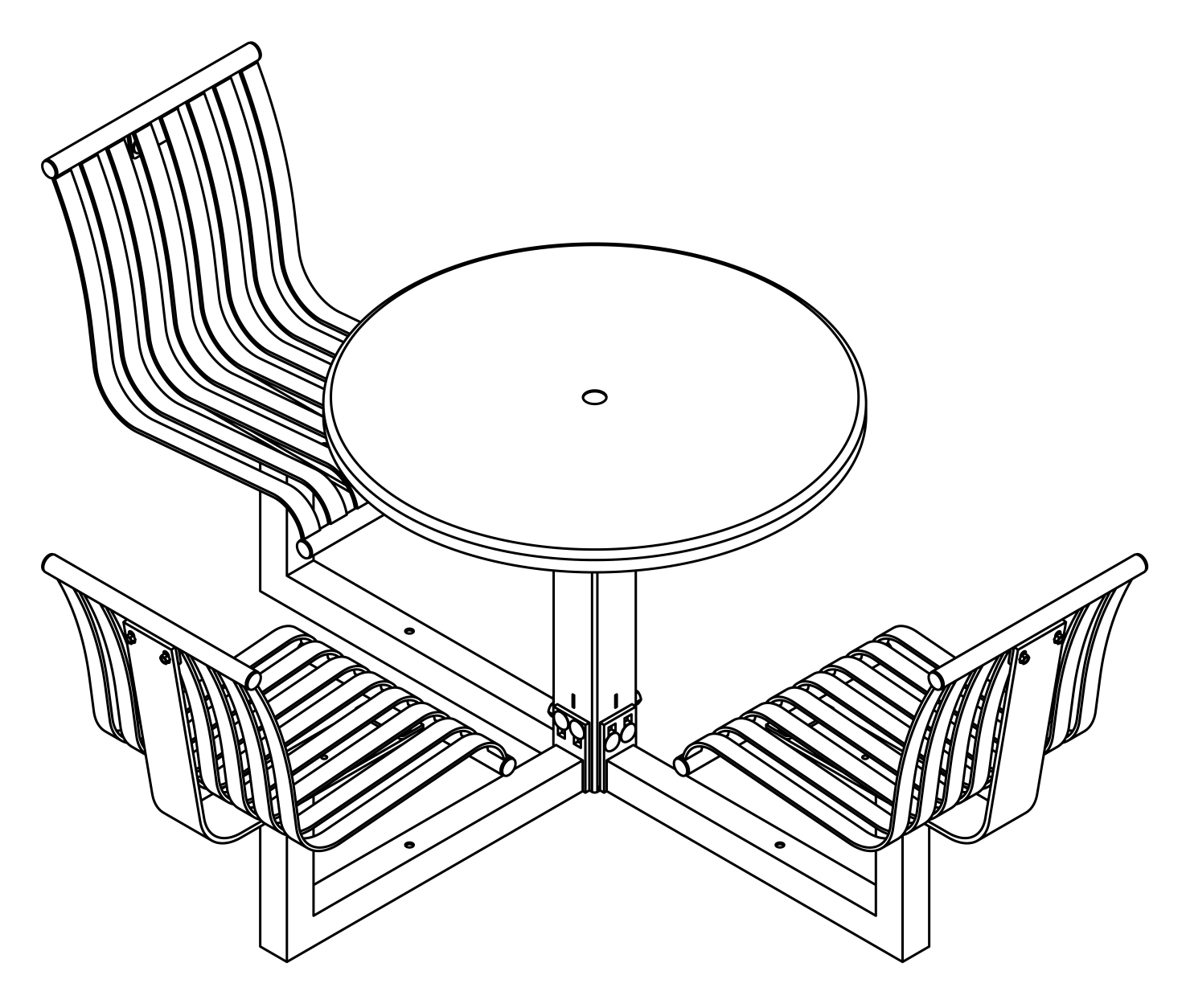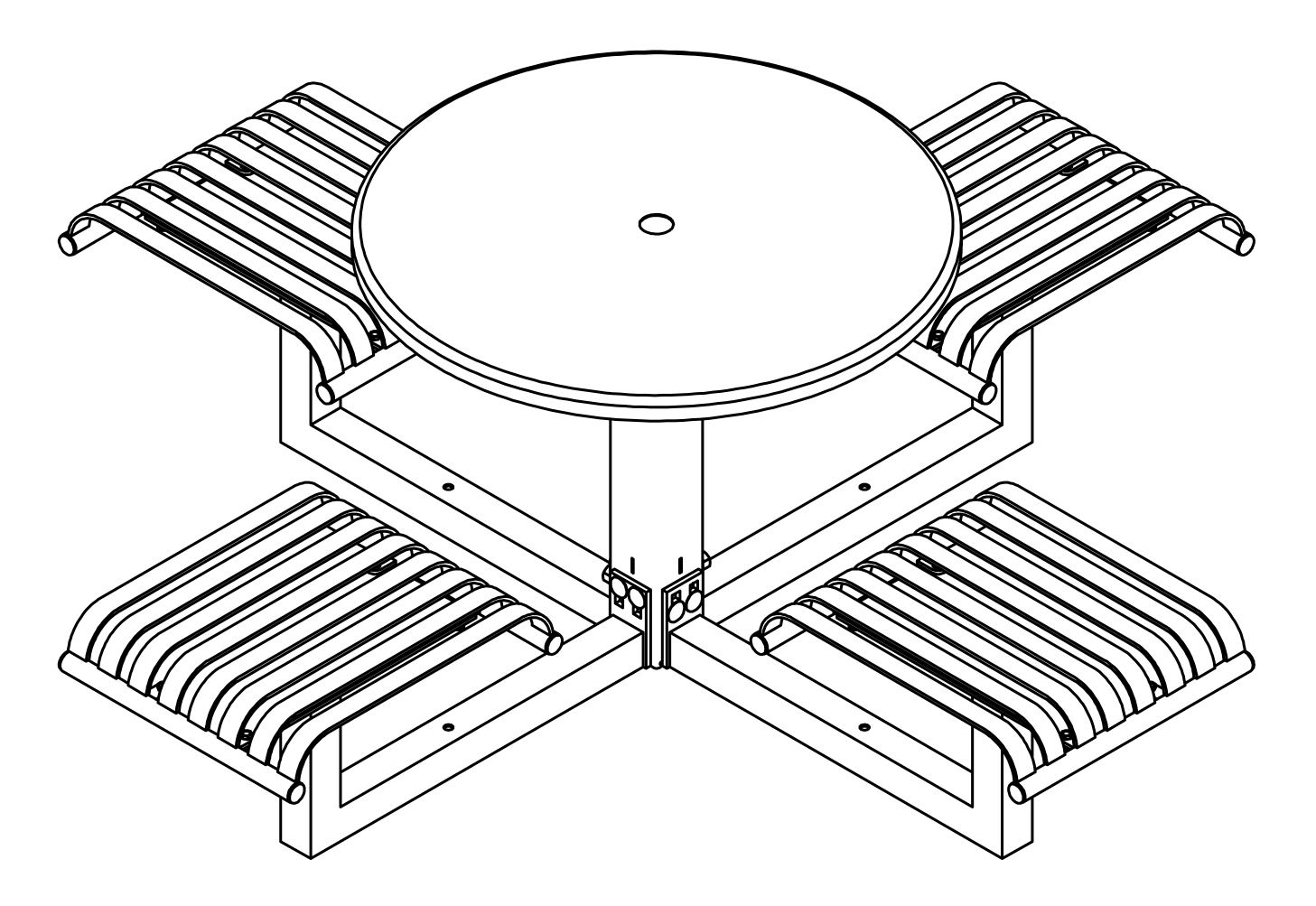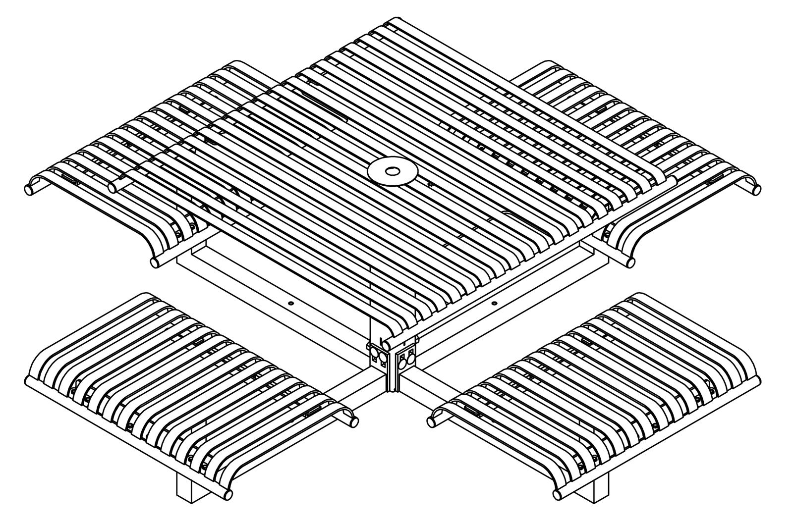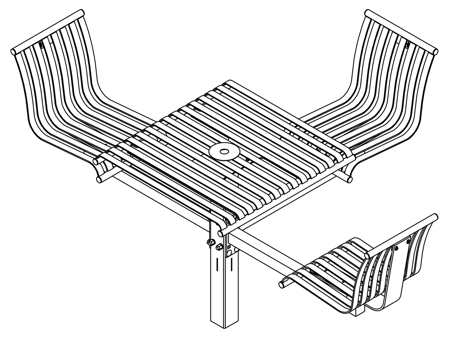 The CityView carousel tables provide clustered seating options for any patio setting. Chairs are permanently fixed to tables with support tubes that attach to the center post. CityView carousel tables offer a wide variety of design features and include round, square, ribbon style or solid table tops and can be offered in several mounting options.