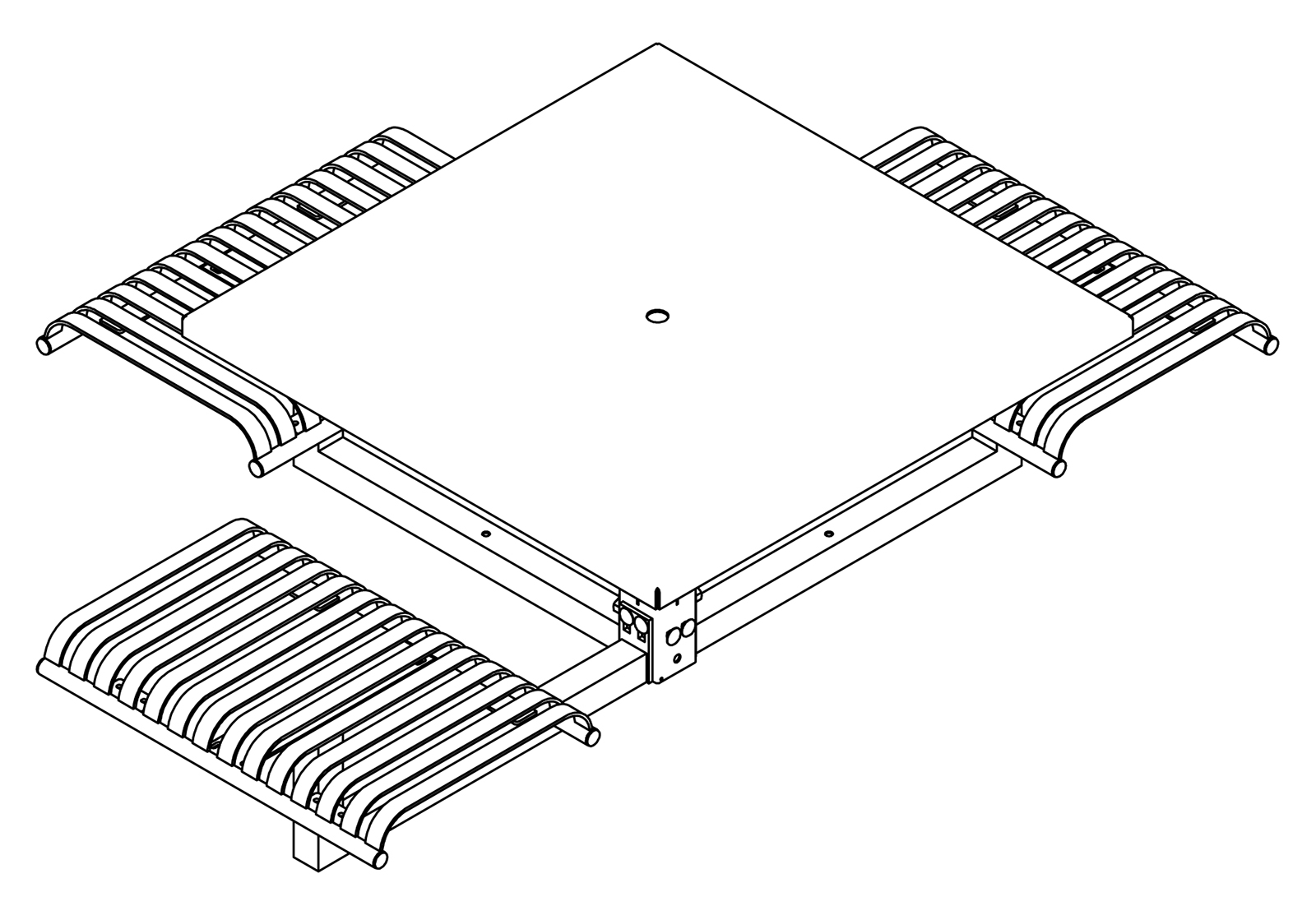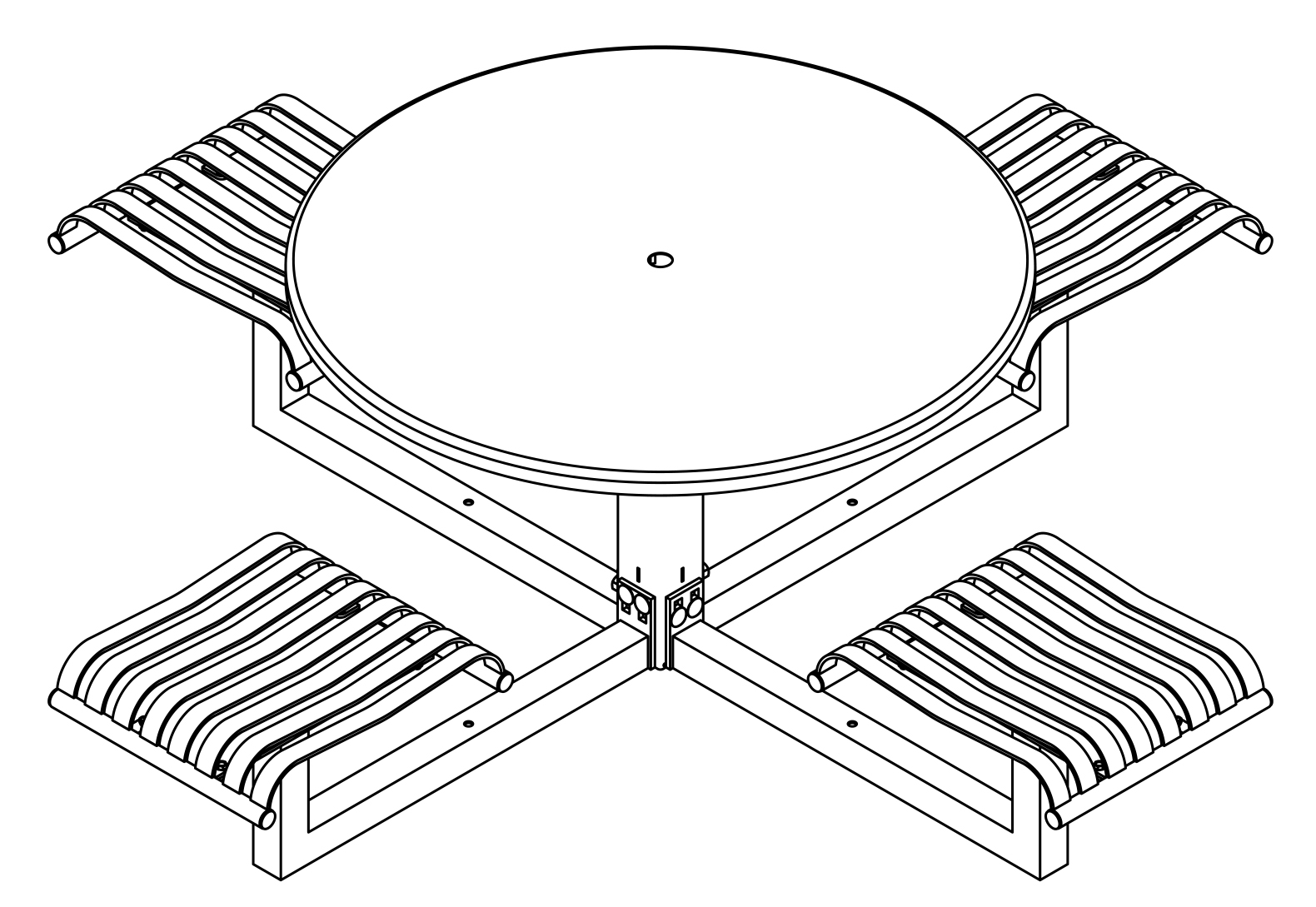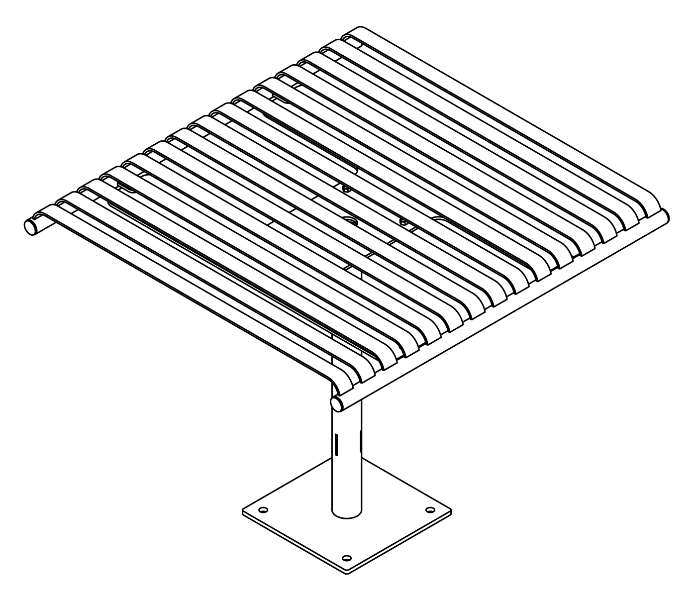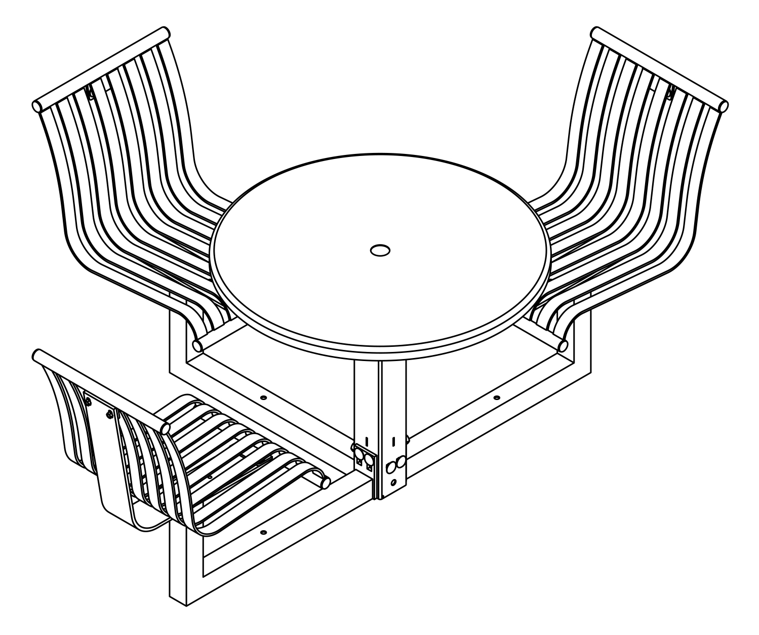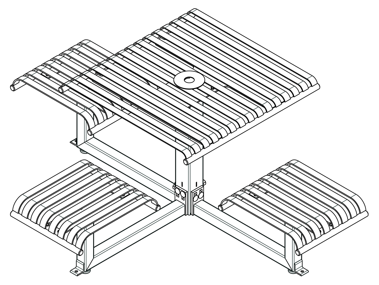 The CityView carousel tables provide clustered seating options for any patio setting. Chairs are permanently fixed to tables with support tubes that attach to the center post. CityView carousel tables offer a wide variety of design features and include round, square, ribbon style or solid table tops and can be offered in several mounting options.