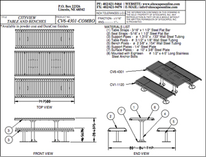 CityView 6 ft. Surface Mount Open Slat Table Combo with 2 Benches CV6-4301-COMBO