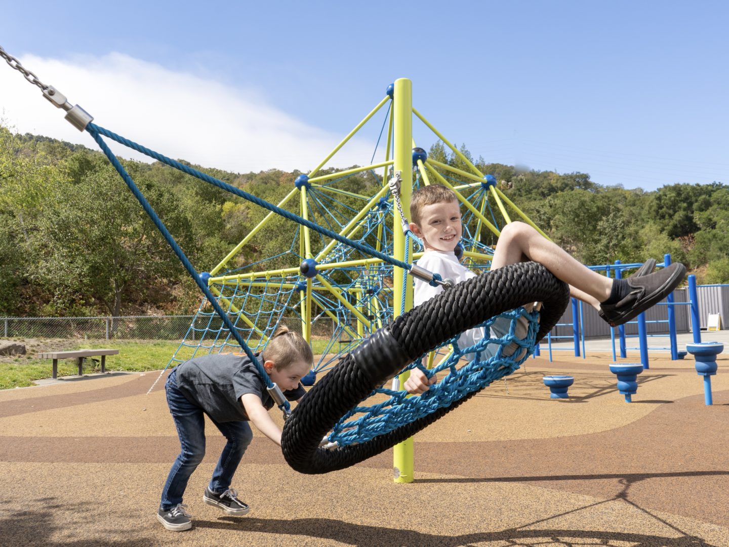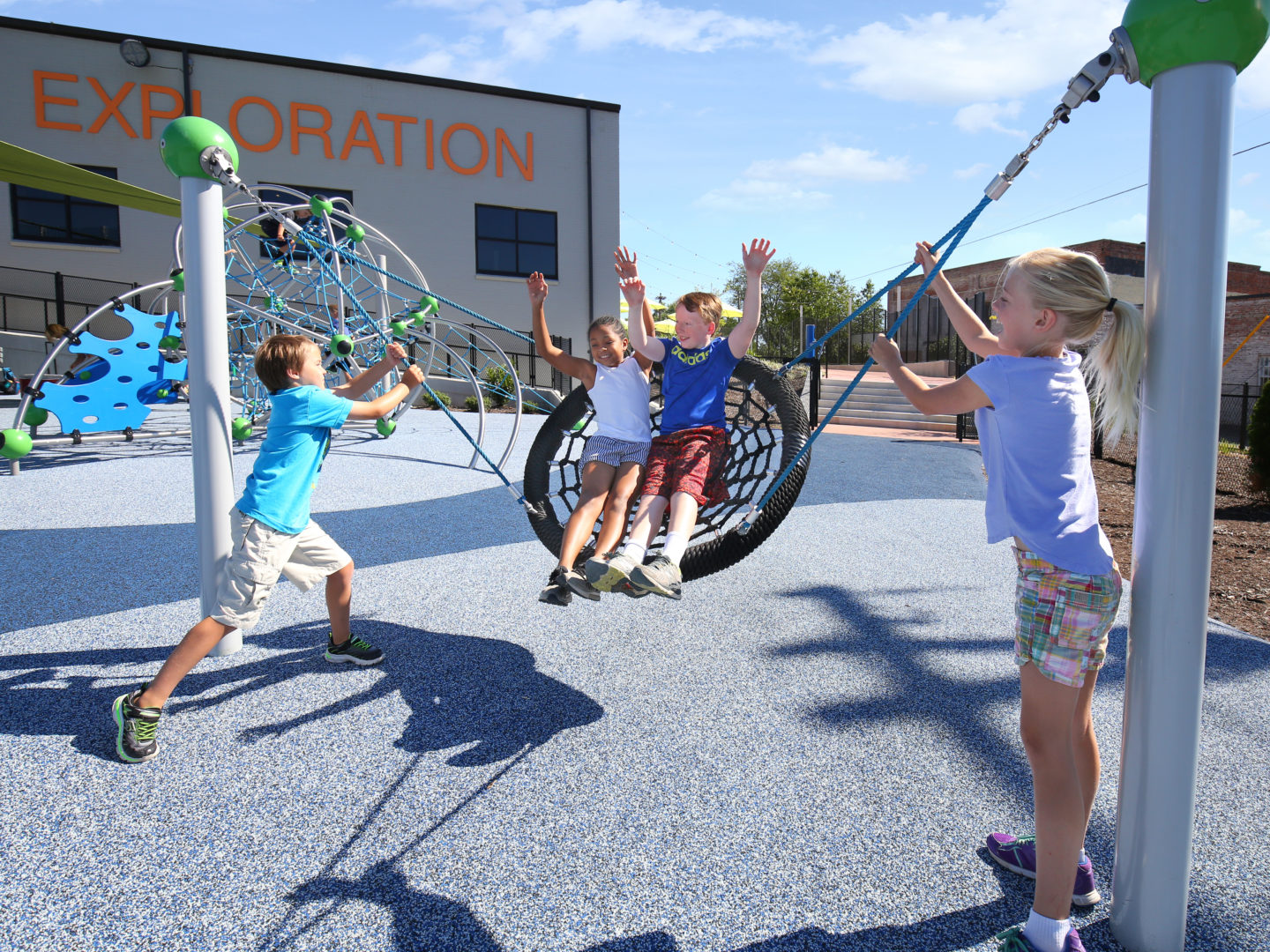 The new Cube L offers even more space for climbing. There is 80% more play volume within the spatial net to make children happy. Like the smaller Cube, this new structure features a combination of futuristic design and the natural material wood.
