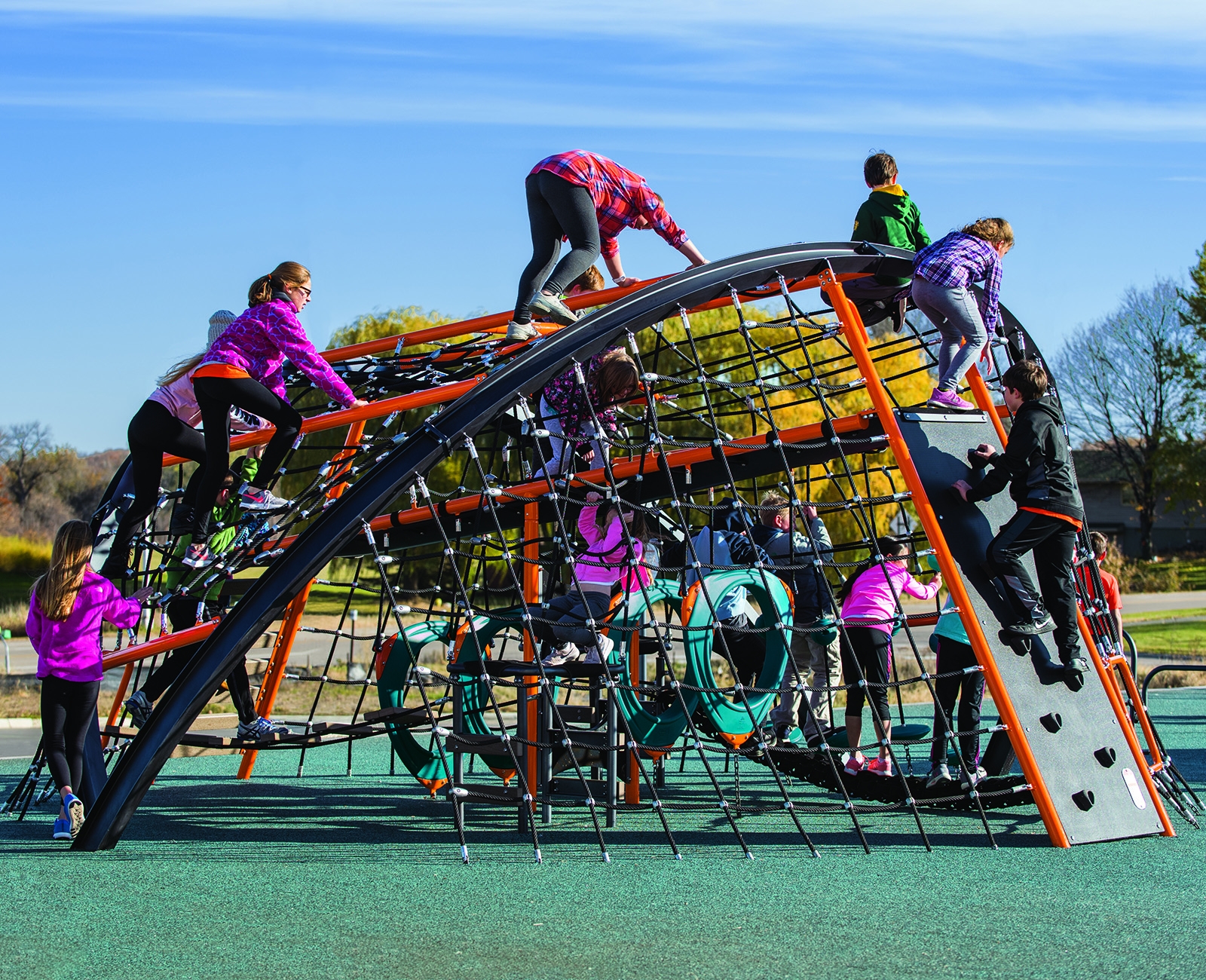 The unique look of this net climbing structure offers tons of opportunities to climb, crawl and hang out. The open-ended play experiences engage creativity and critical decision making as kids ages 5 to 12 maneuver their positions from one challenge to the next.