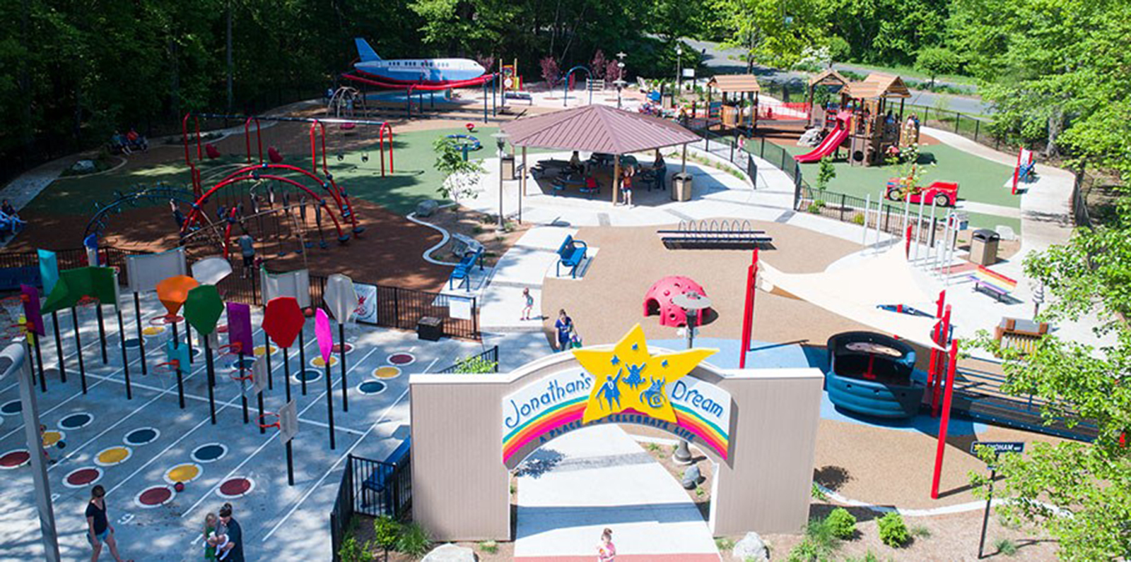 Jonathan's Dream Reimagined is a playground wonderland! This sprawling playground offers something for children and families of all ages and abilities. In addition to the Evos® playsystem and nature-inspired PlayBooster® playstructure, a double ZipKrooz®, complete with a DigiFuse® airplane, allows everyone to experience the thrill of zipping from one end of the playground to the other. Playground swings, freestanding components and more round out this amazing playground design.