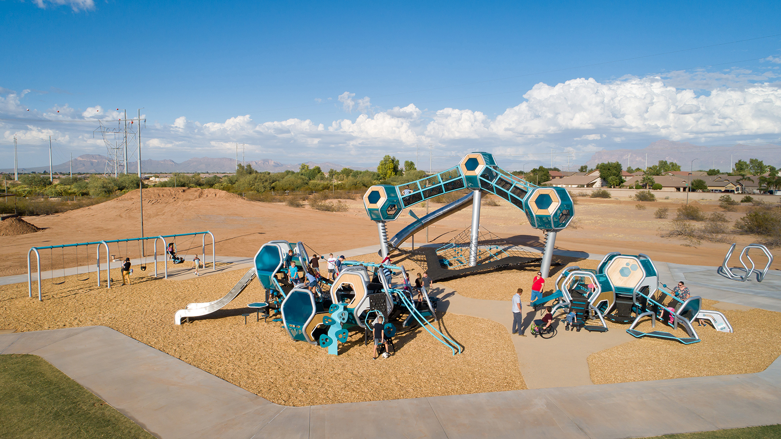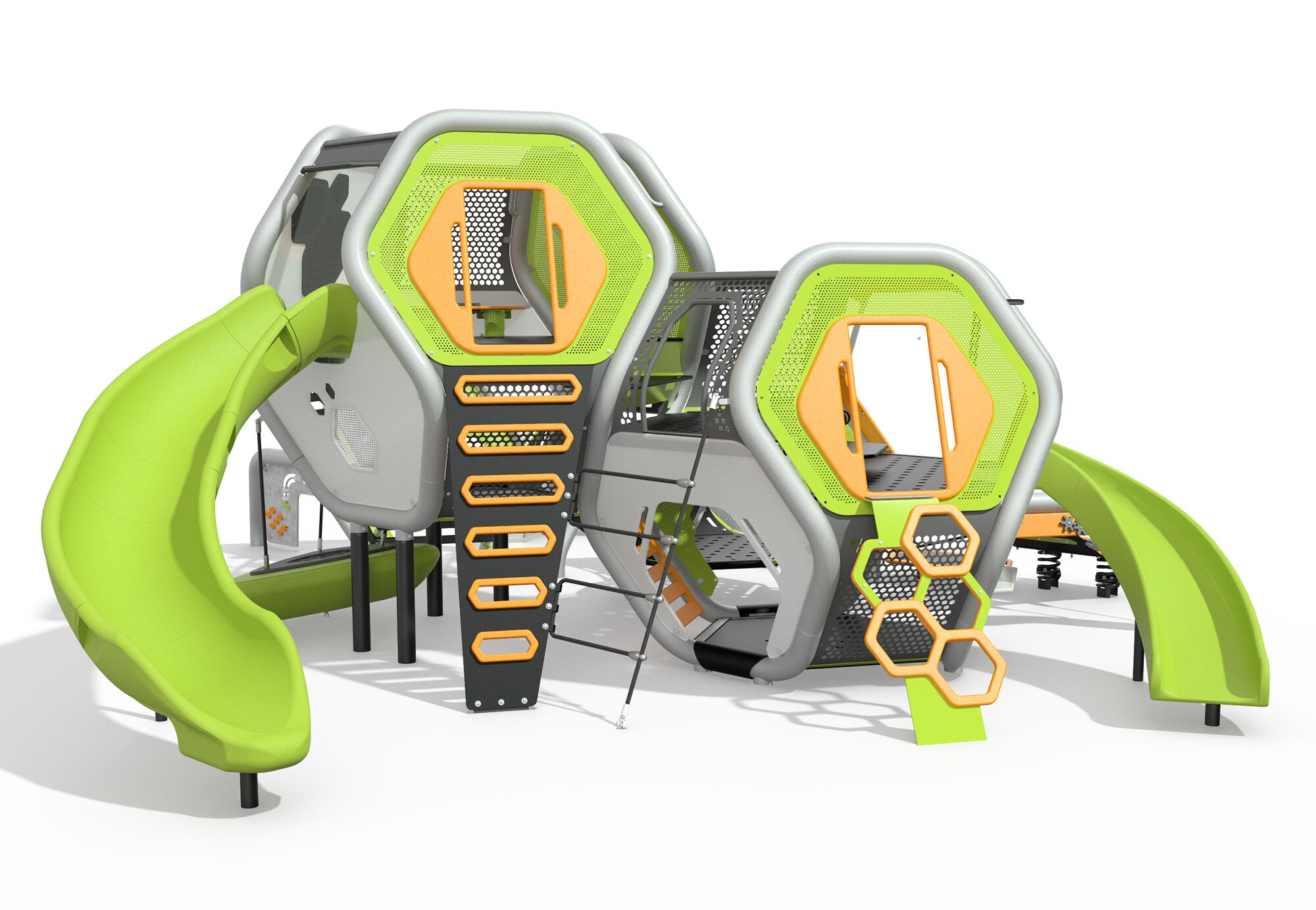 Endless formations of fun are rooted in the new geometric playscapes of Hedra™, Hedra Scout and Hedra Towers. These tessellated shapes create playful pods that link together, forming a fascinating interconnected matrix of three-dimensional play.