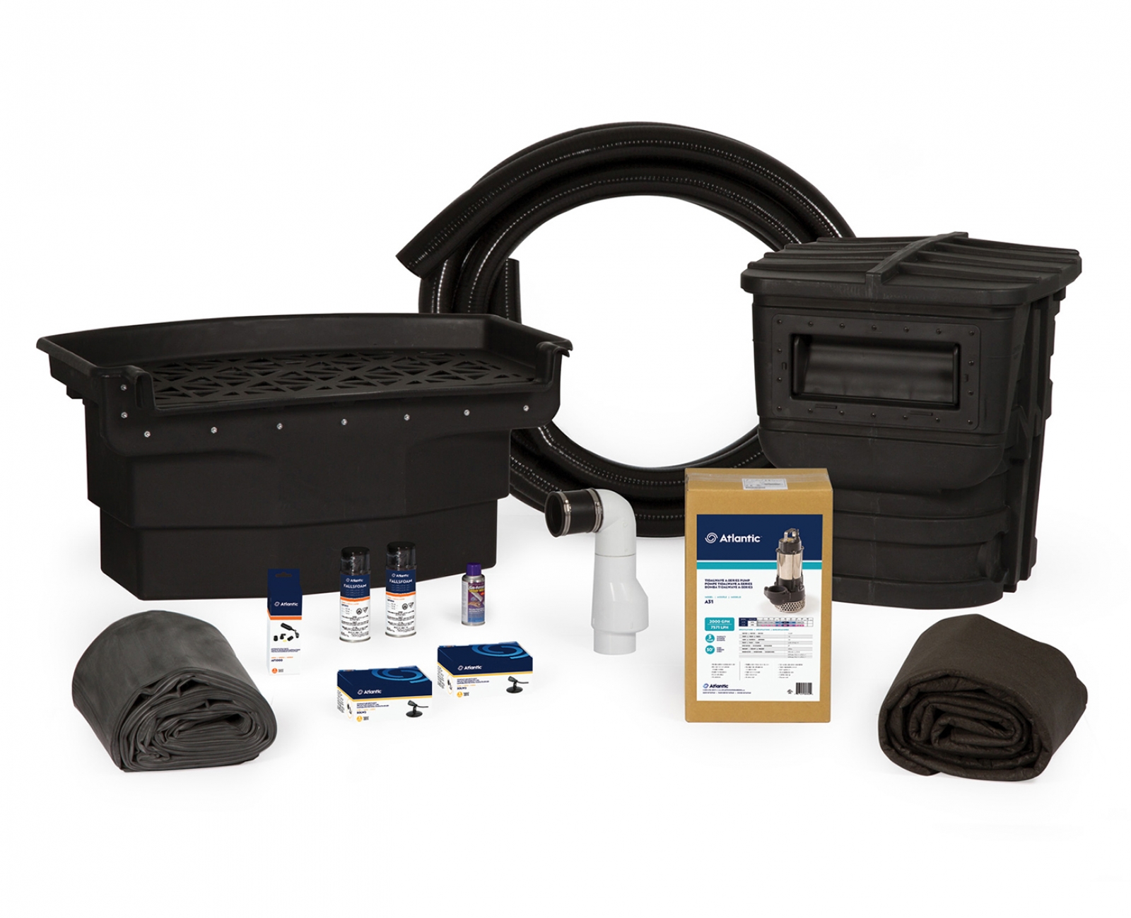 Atlantic Pond Kits save you time and money by avoiding costly mismatching and multiple trips to the store. Skimmer, FilterFalls, pump and accessories are designed to work together to eliminate any guesswork. Energy efficient pumps keep operating costs under control. Medium, Large and Extra-Large Kits include LED lighting.