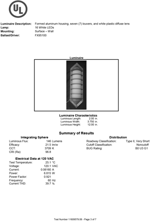 Arcade Series Louver 14 Wall Sconce Photometrics 3000K