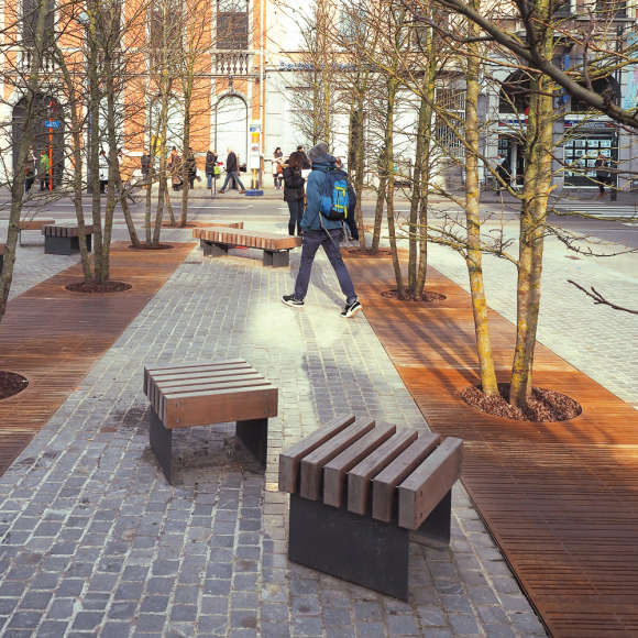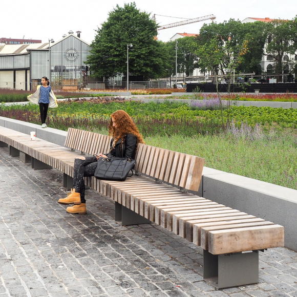 Products | LA Details | Site Furnishings & Receptacles | Seating - Metal / Wood | Rough&Ready Carré Benches