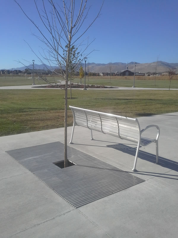 Marina, CAST IRON tree grate, 60" square, in halves, 1/2" maximum slot openings for A.D.A compliance and pedestrian safety,