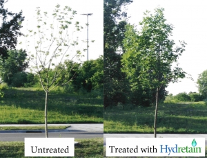 Hydretain attracts soil moisture vapor and condenses it into plant usable water droplets to reduce watering requirements up to 50% or more. Available in liquid or granular. One application lasts for three months.