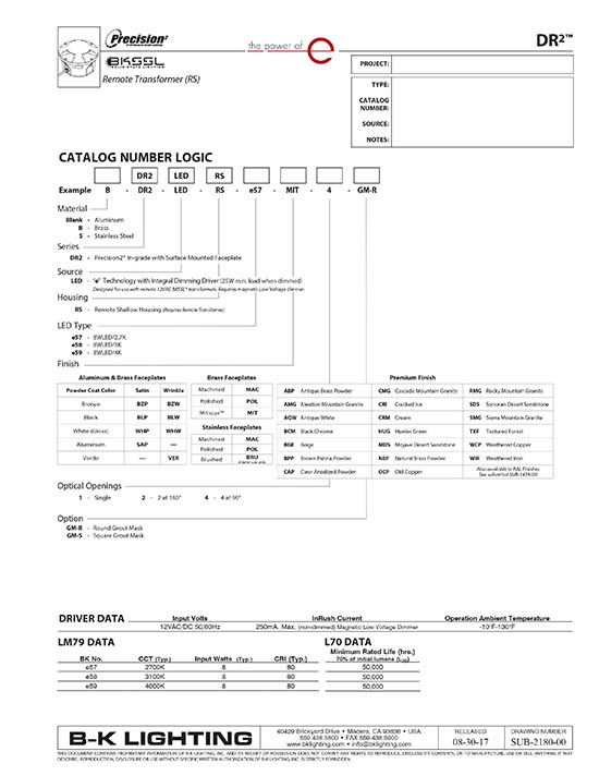 DR2 Series Ingrade Shallow Remote Transformer Solid State BKSSL® 2 Specs