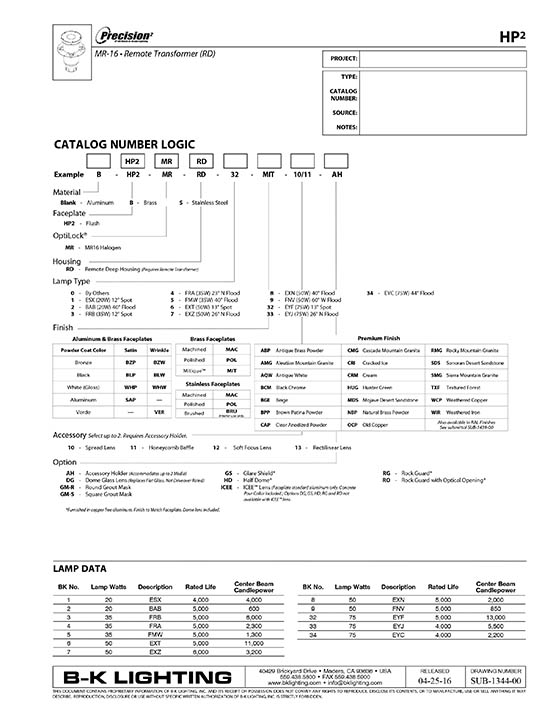 HP2 Series™ Ingrade Remote Transformer Deep Housing Halogen MR16 Specs & Photometrics