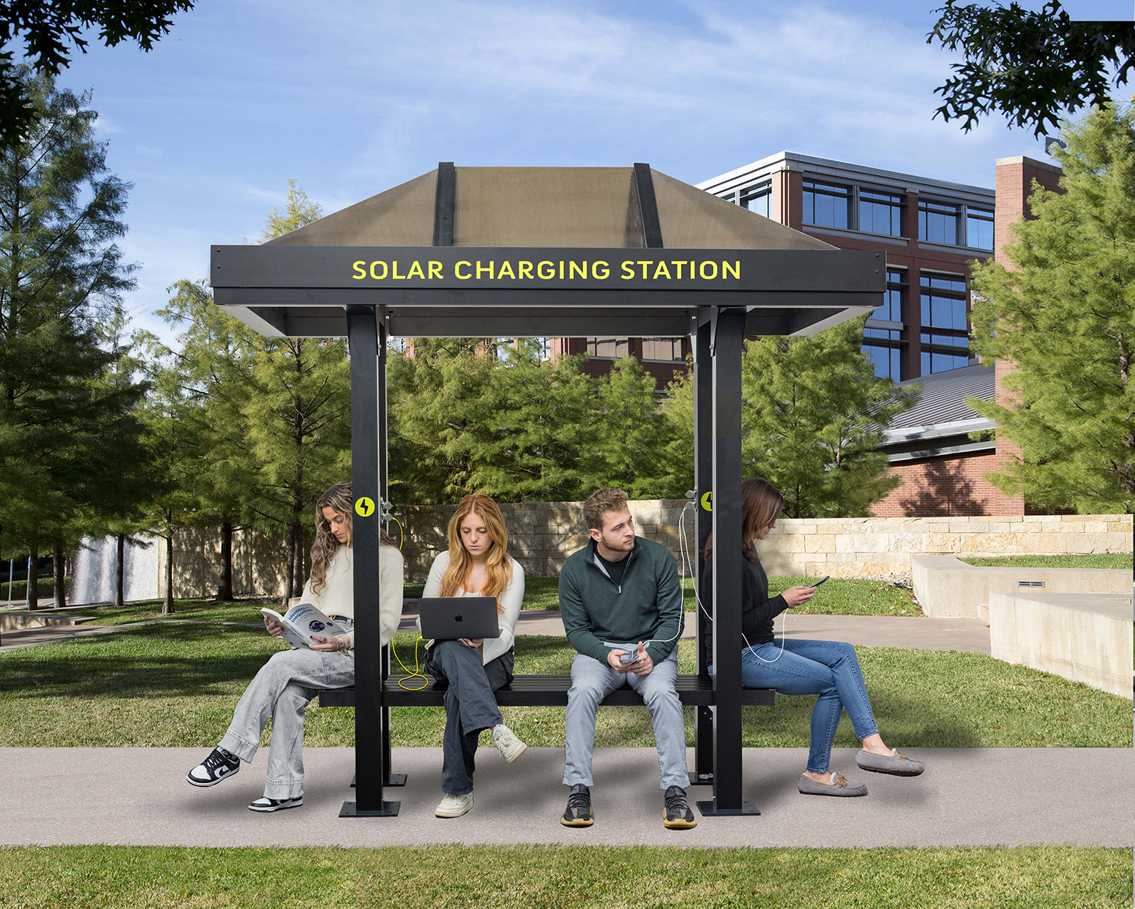 An option that your customers are sure to appreciate is a transit shelter outfitted with Solar USB Charging Ports. Wiring is concealed in our shelter posts and connects our solar panel to dual USB ports mounted inside the shelter. Passengers can now charge their cell phones and laptops while waiting...