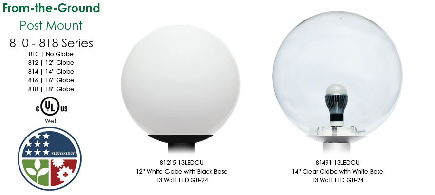 The Incon Lighting 810 | 818 Series post mount lighting comes in a verity of sized globes for residential and commercial use. The 810 | 818 Series is a durable product that is American Compliant. The 810 Series is a polycarbonate post mount base with no globe. Series 812, 814, 816, and 818 are different...