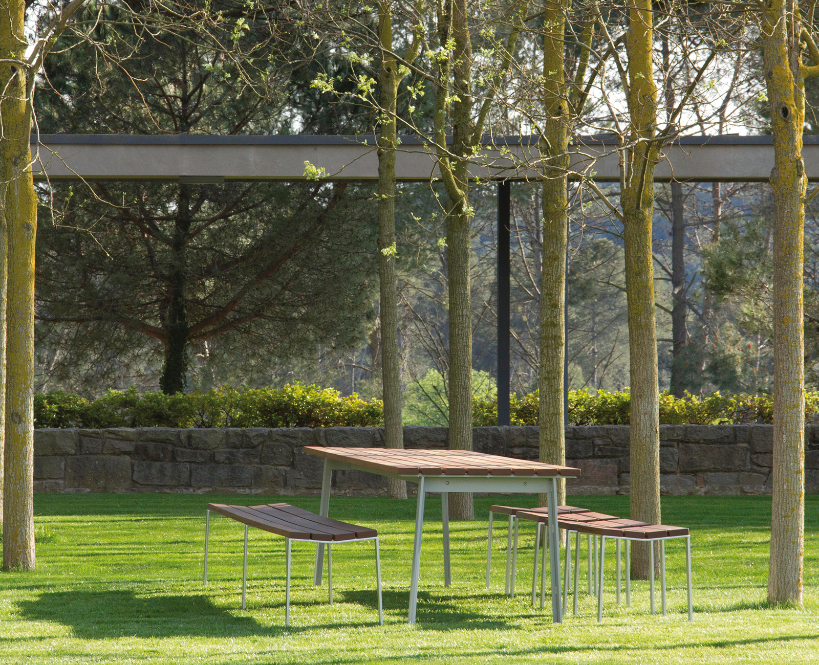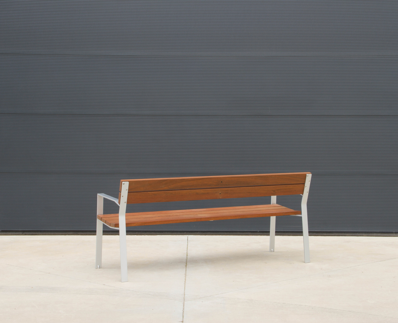 Bancal is a modular and versatile bench for public meeting areas. Its flat steel plate structure supports a seat of wide wood boards that provides a large seating area. The optional wood board back is offset from the seat. Bancal is strong and robust in form and function. Virtually maintenance free it...