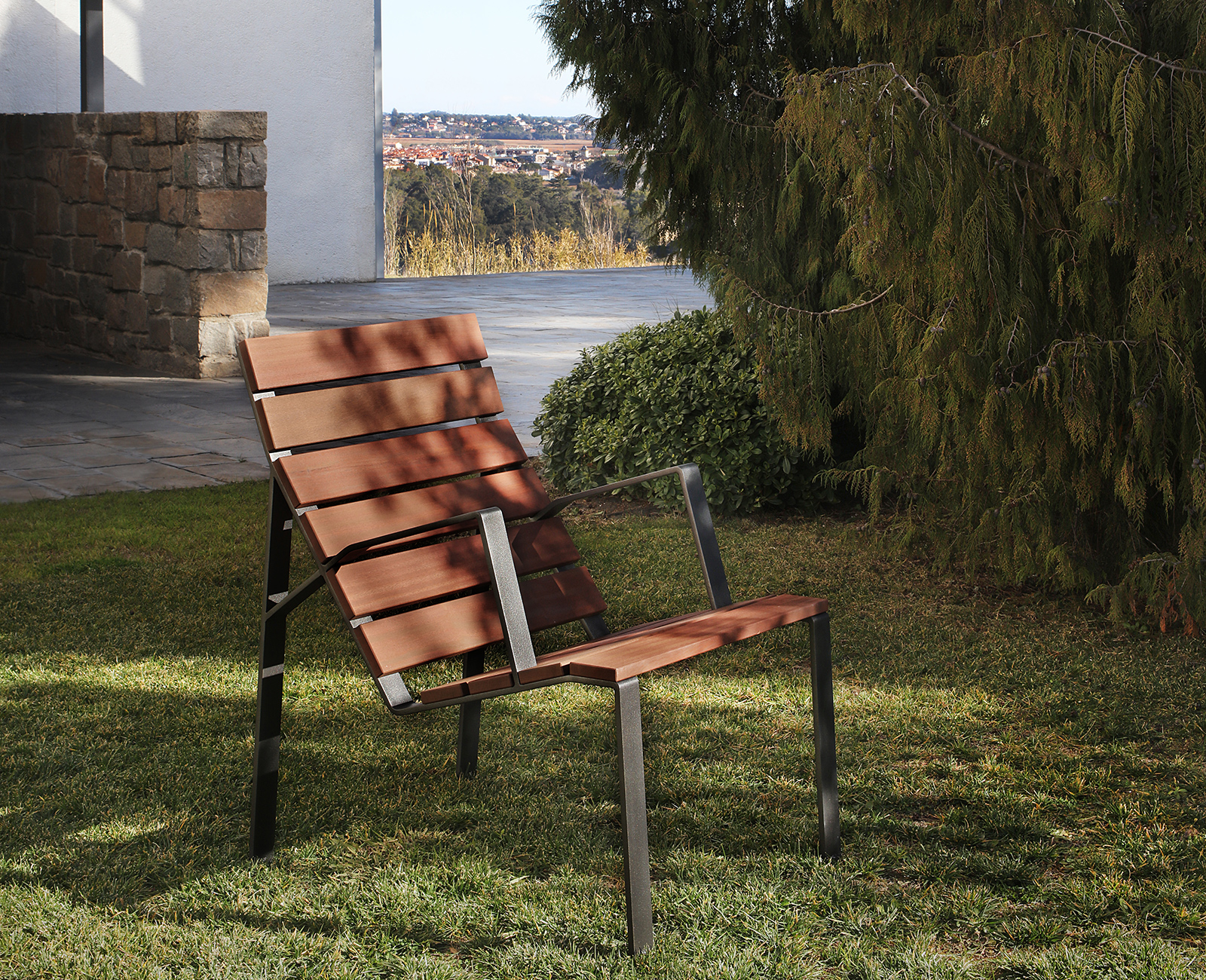 The Harpo lounge chair takes the minimal form and international appeal of the Harpo bench into a more casual realm. The lounge chair has arms and a high backrest for exceptional comfort, while its robust bent and welded steel structure with slatted wood seats and backs provide performance and durability...
