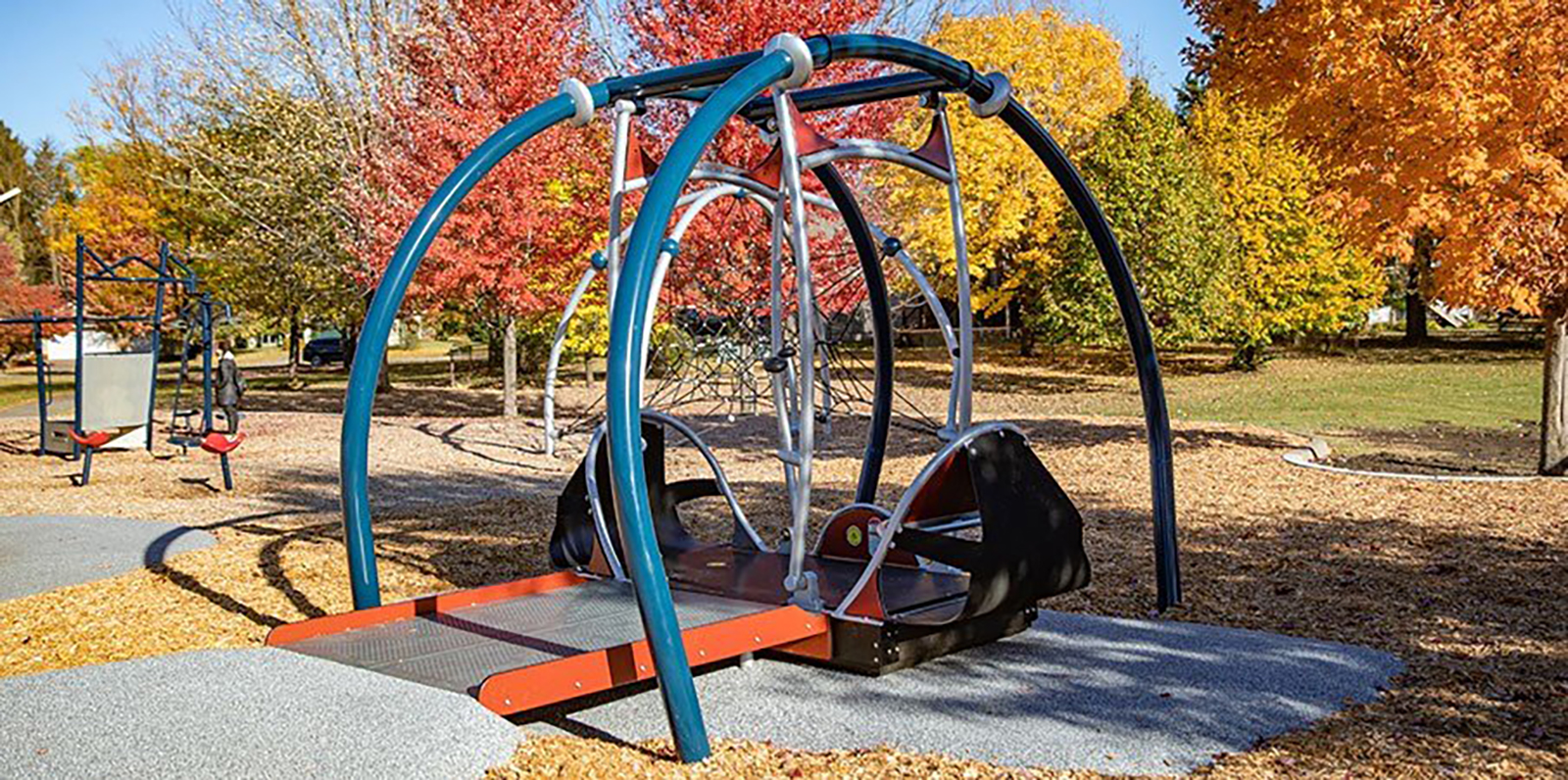 The Sway Fun® Glider is the first wheelchair-accessible glider that meets all safety standards. A great choice for totally inclusive playground fun.
